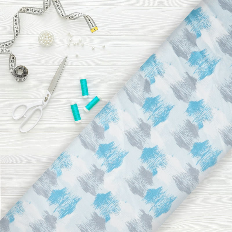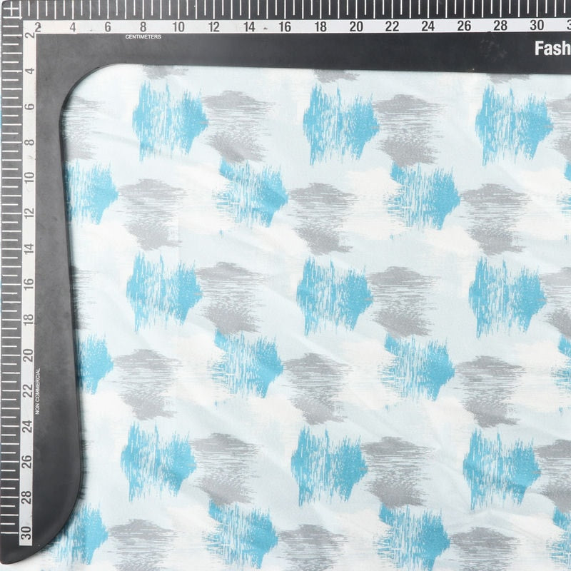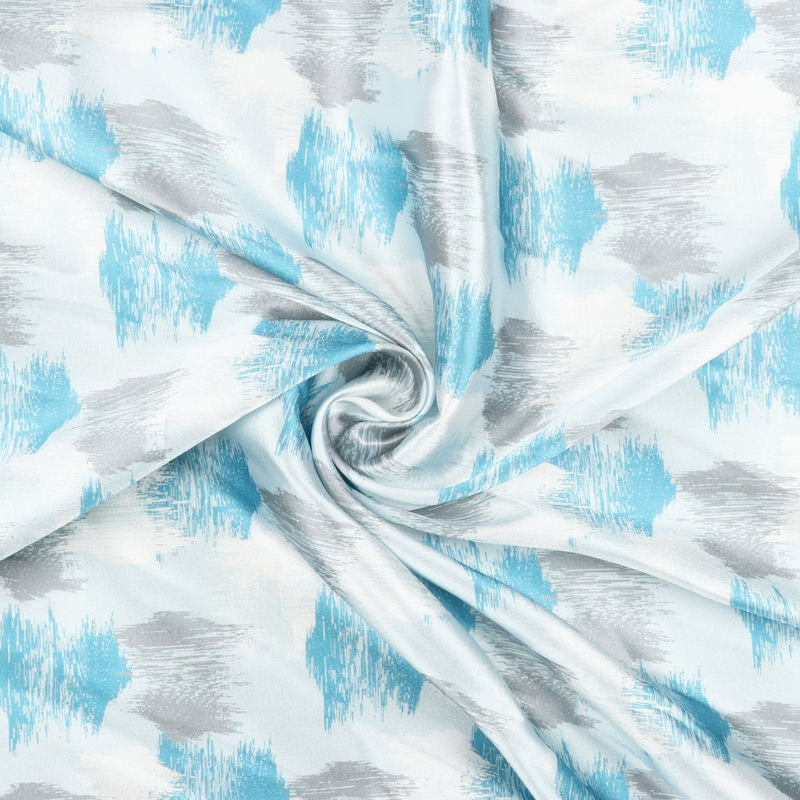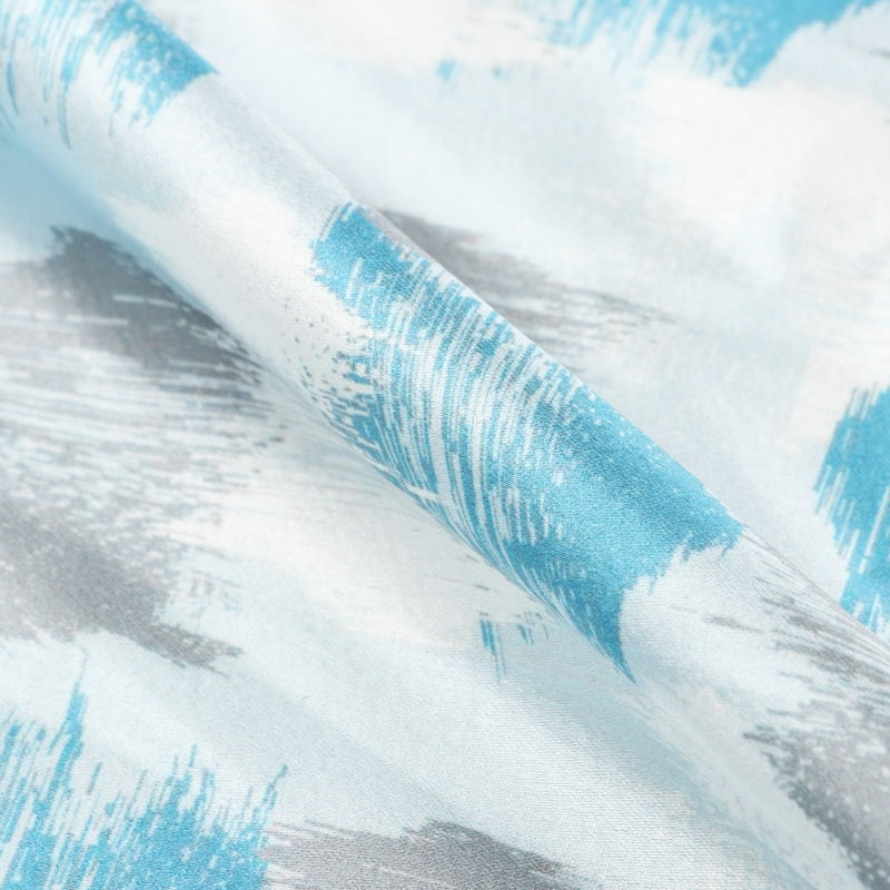 Blue And White Abstract Pattern Digital Print Japan Satin Fabric