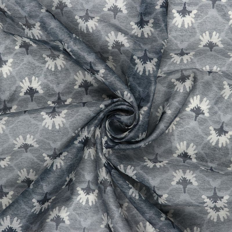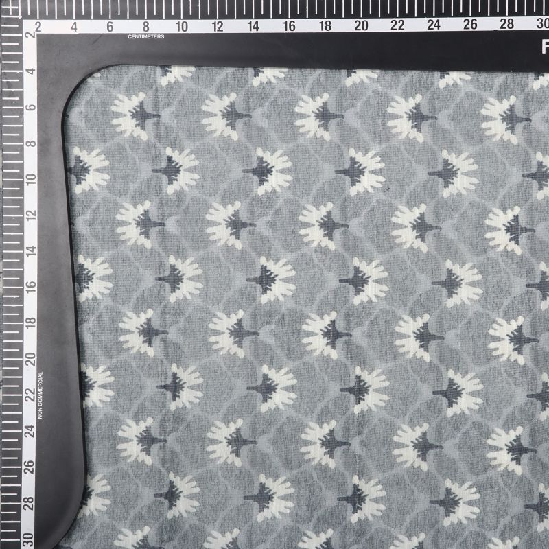 Grey And White Abstract Pattern Digital Print Chanderi Fabric