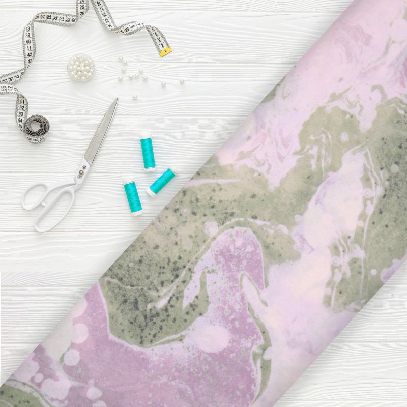 Light Pink And Green Abstract Pattern Digital Print Georgette Fabric