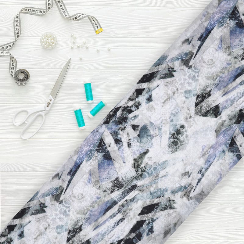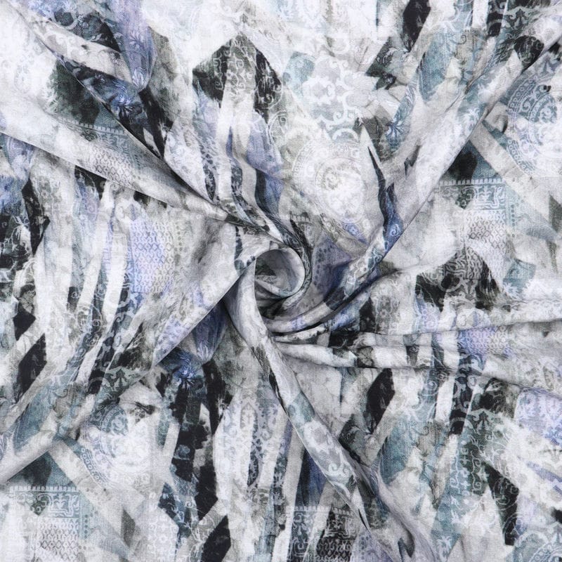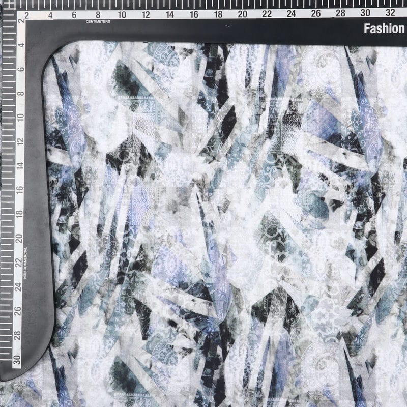 Sky Blue And White Abstract Pattern Digital Print Rayon Fabric