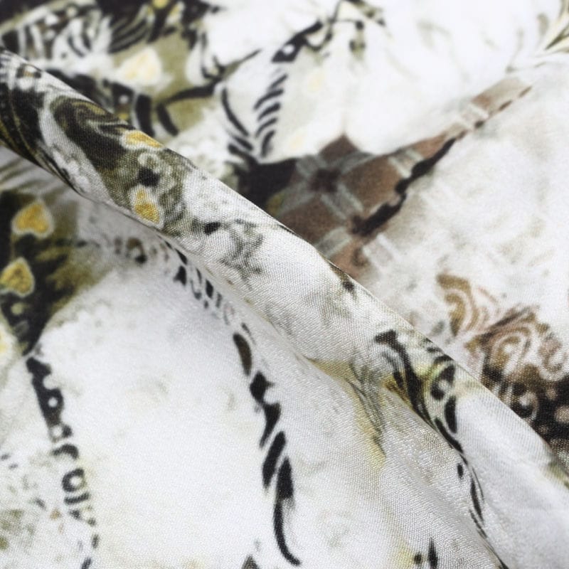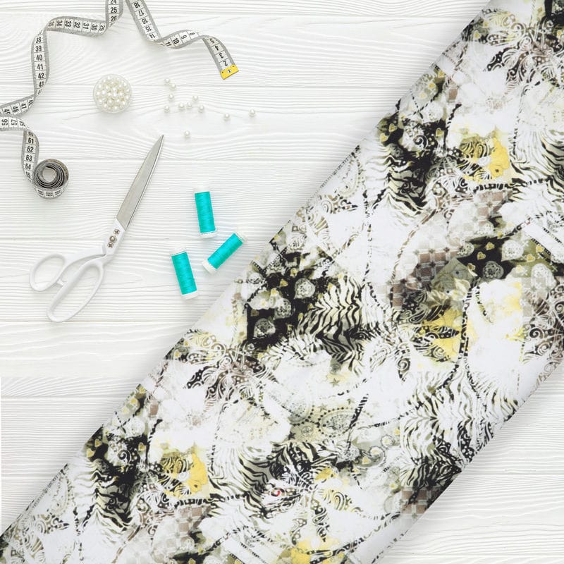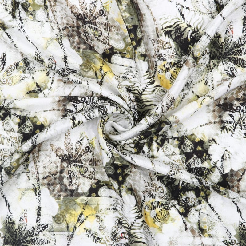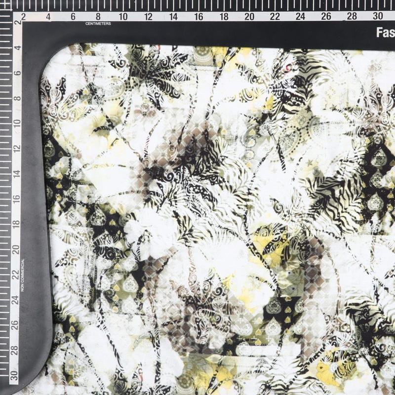 White And Yellow Abstract Pattern Digital Print Silk Crepe Fabric