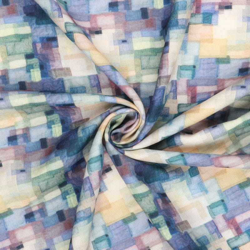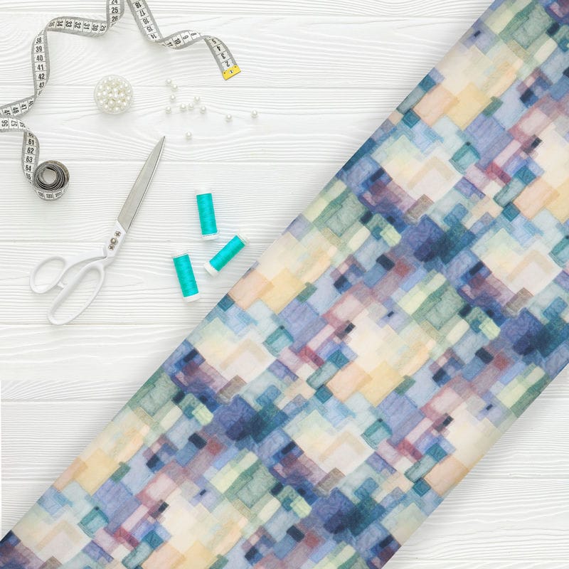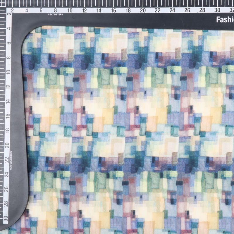 Yellow And Dark Blue Abstract Pattern Digital Print Rayon Fabric