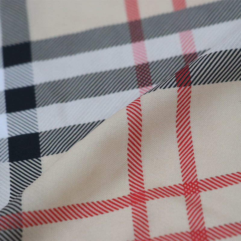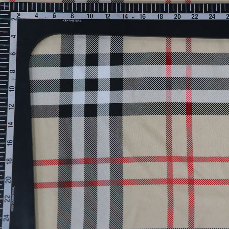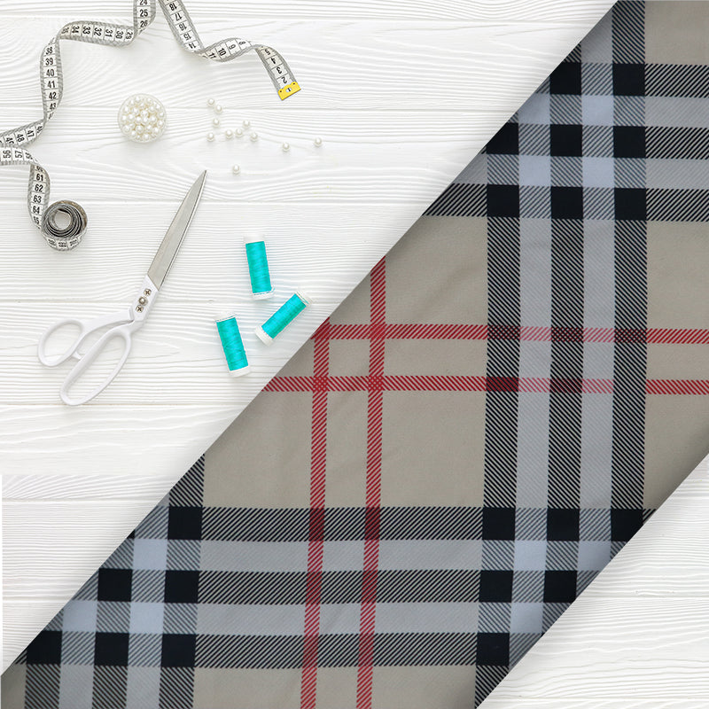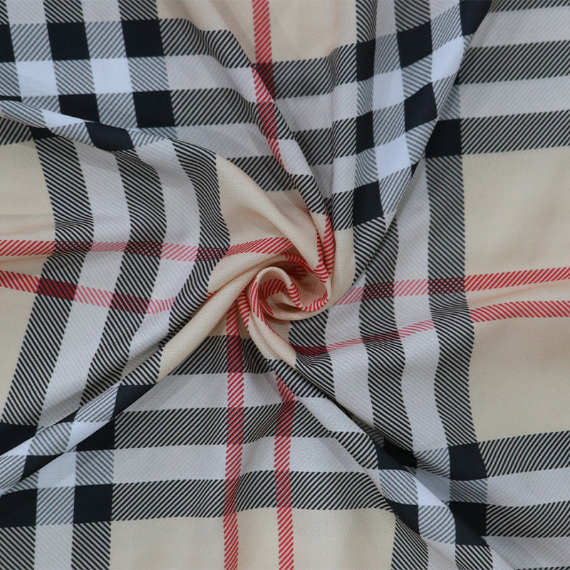 Beige And Black Check Pattern Digital Print Rayon Fabric