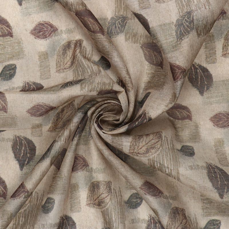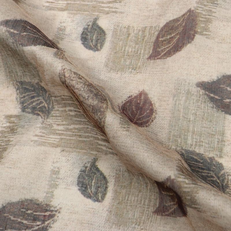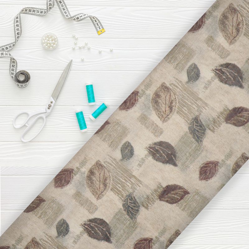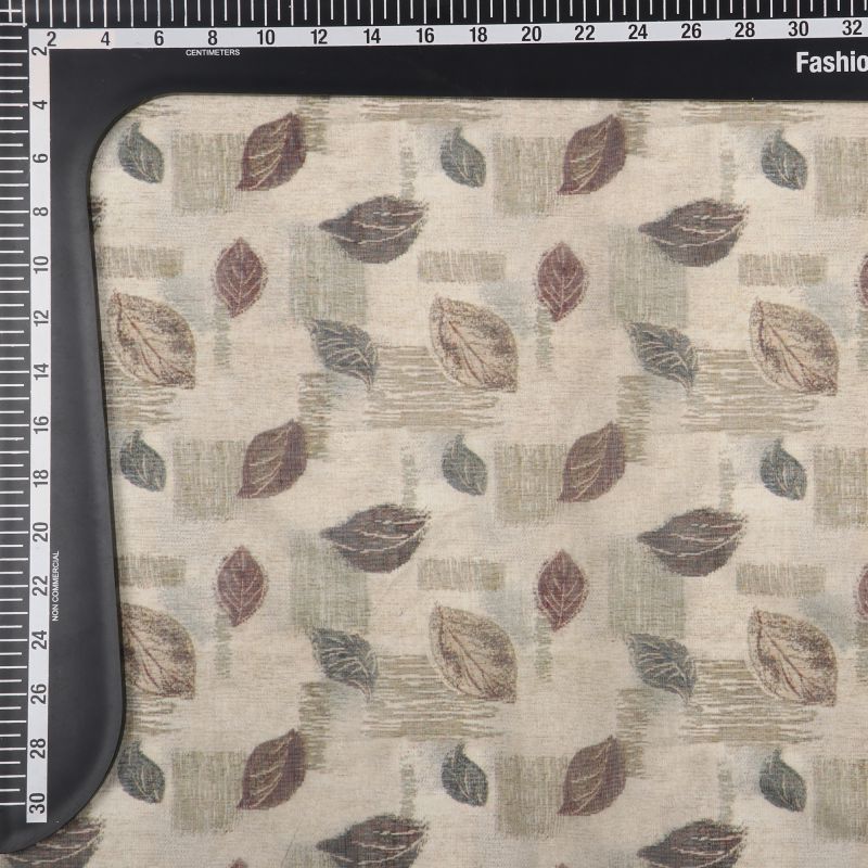 Beige And Brown Leaf Pattern Digital Print Chanderi Fabric