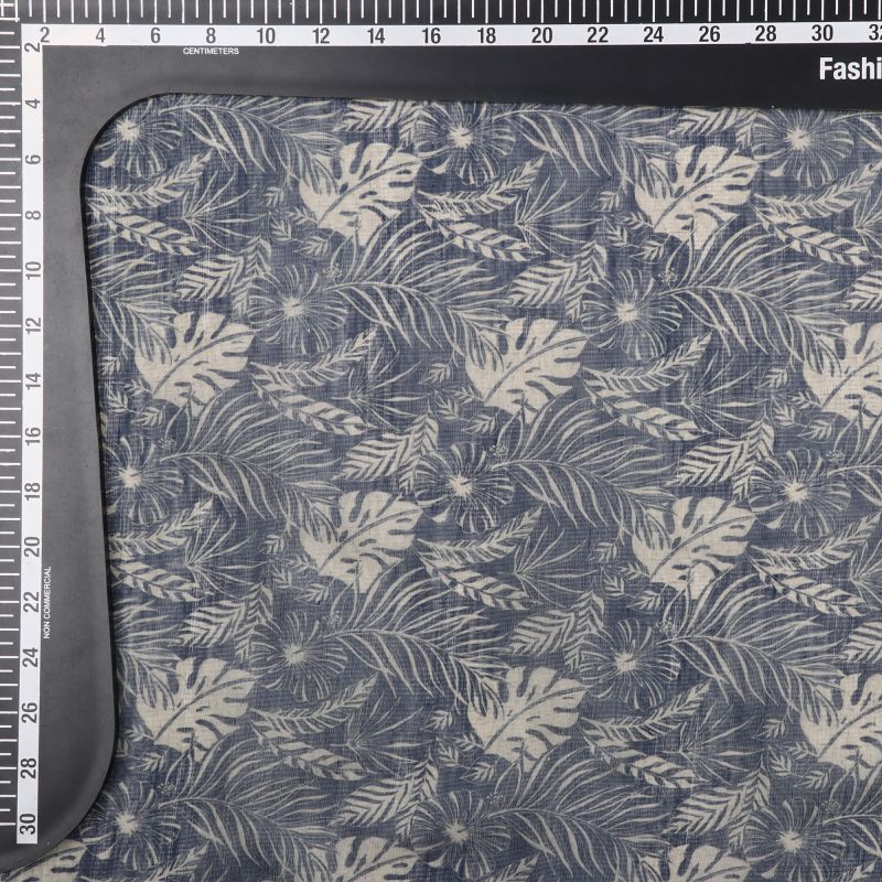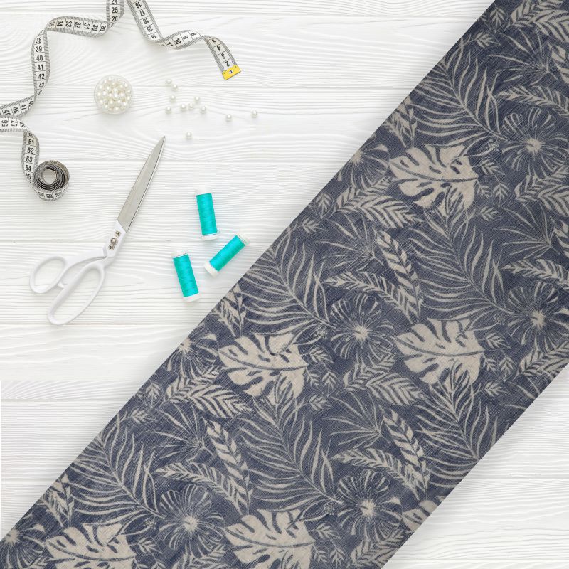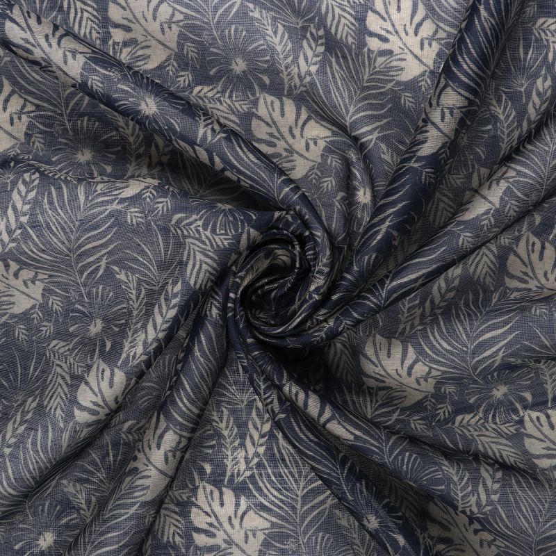 Black And Beige Leaf Pattern Digital Print Chanderi Fabric