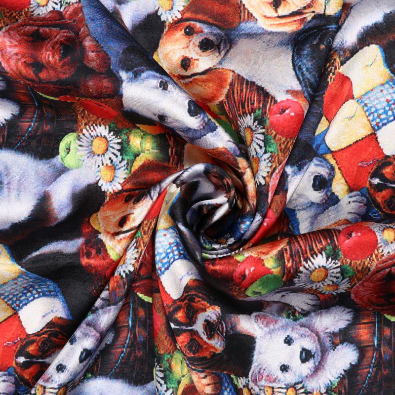 Black And Brown Animal Pattern Digital Print Japan Satin Fabric