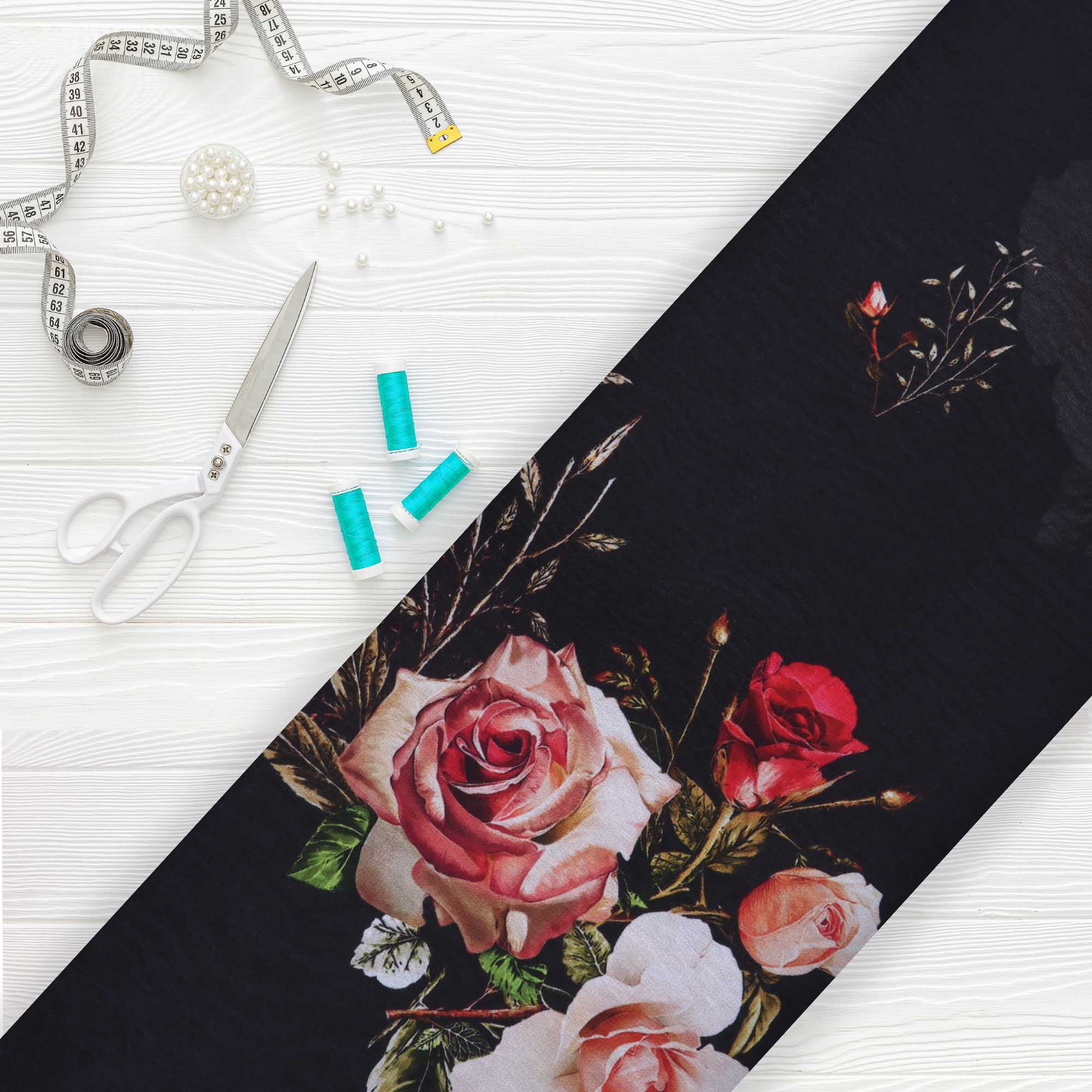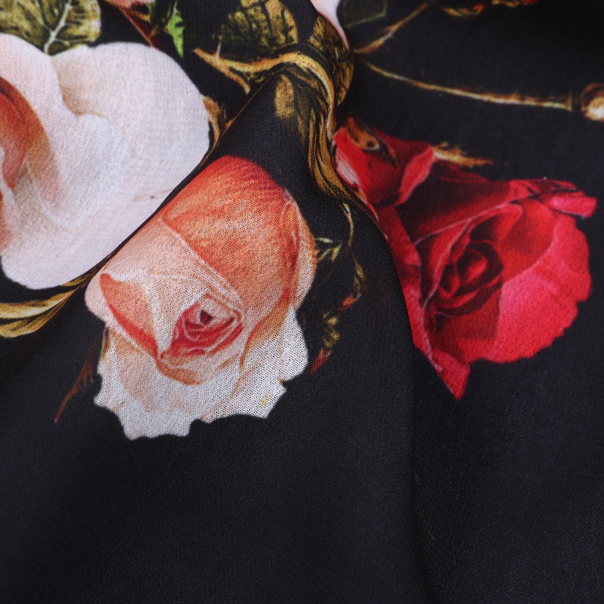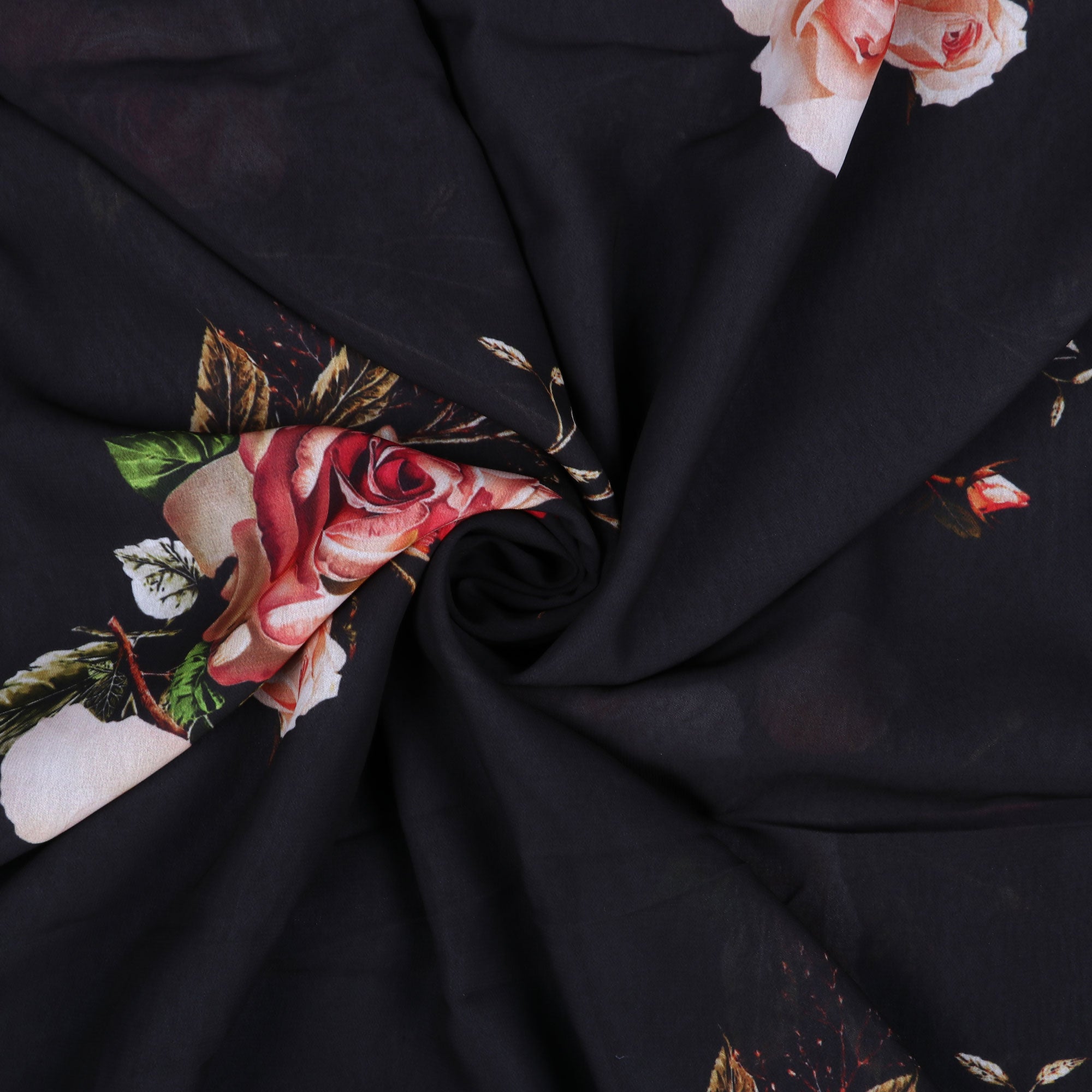 Black And Red Floral Pattern Digital Print Georgette Fabric