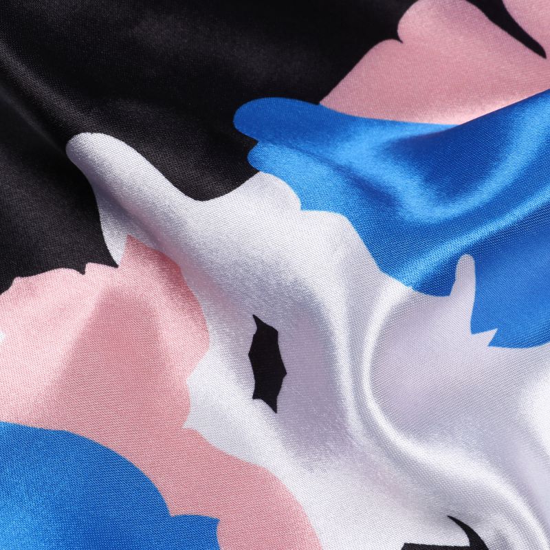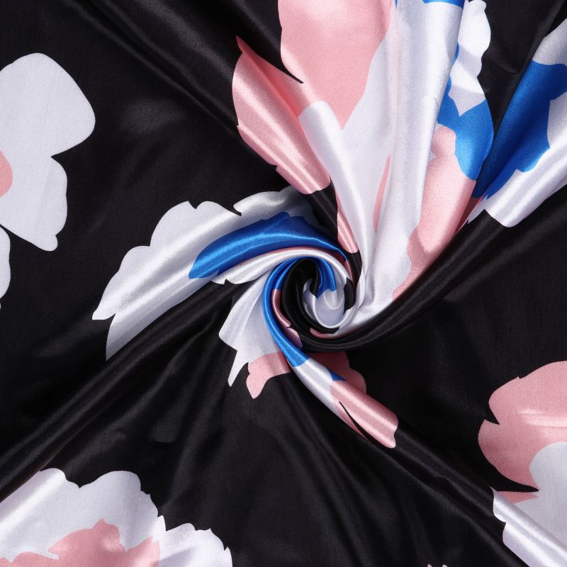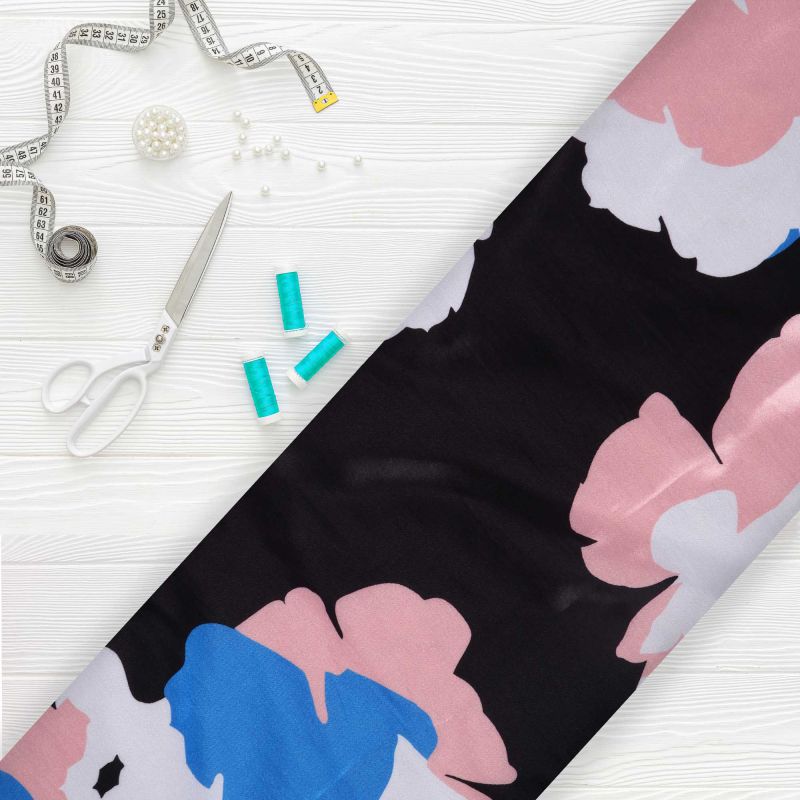 Black And Royal Blue Floral Pattern Digital Print Ultra Satin Fabric