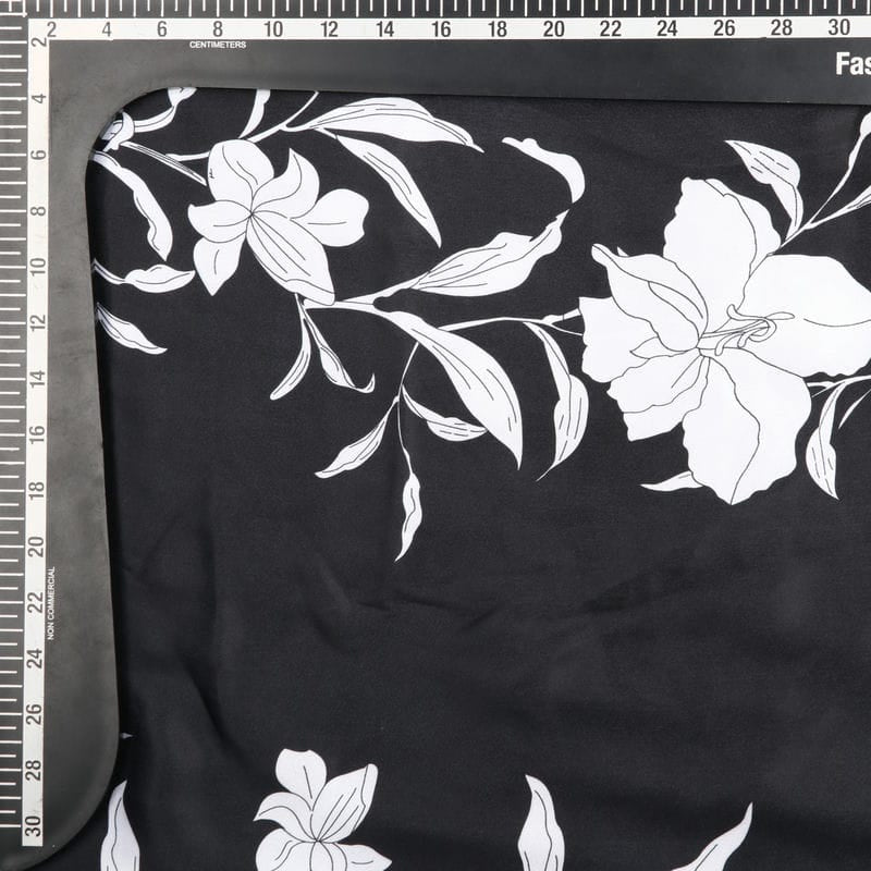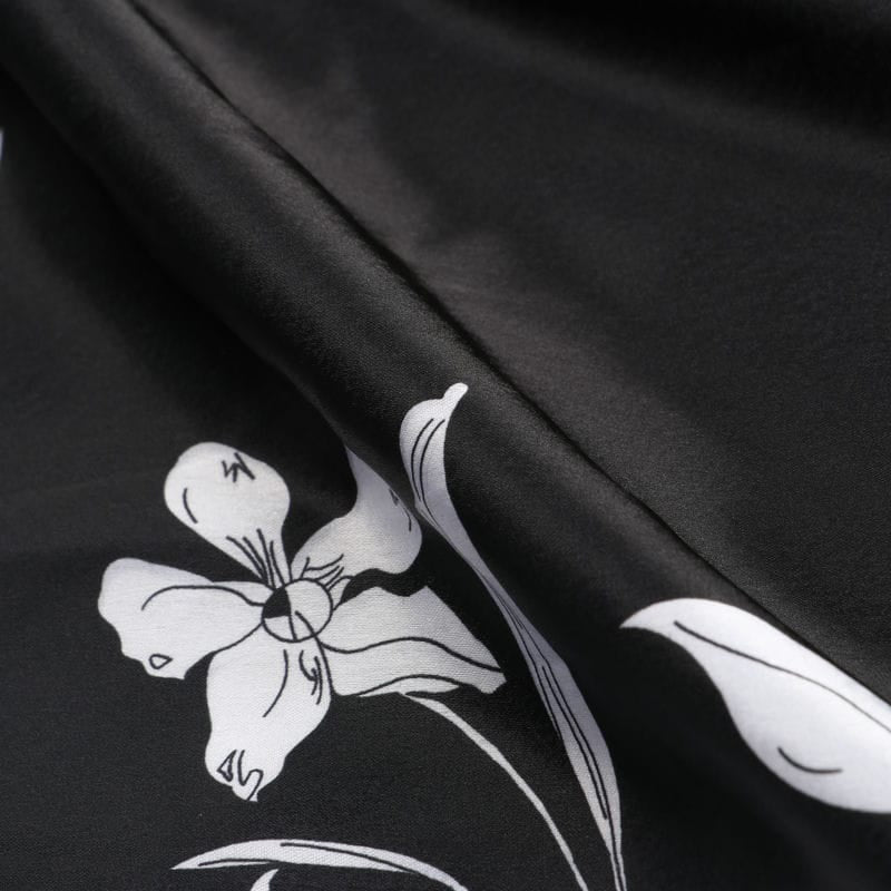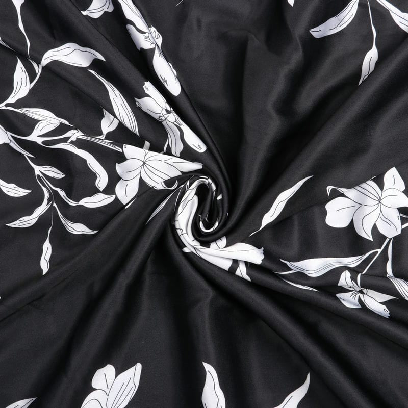 Black And White Floral Pattern Screen Print japan Satin Fabric