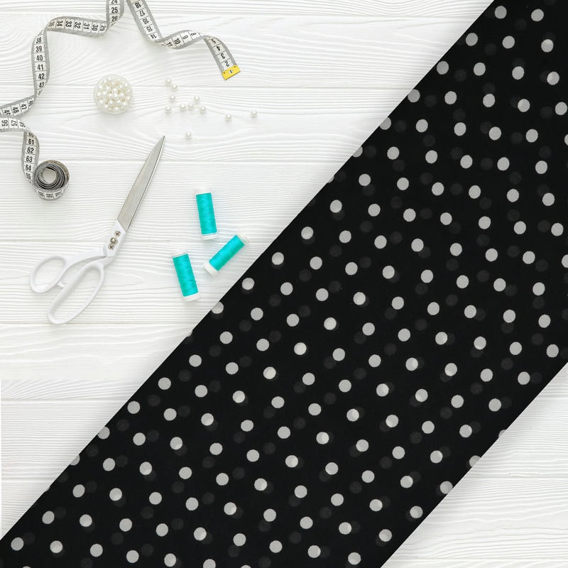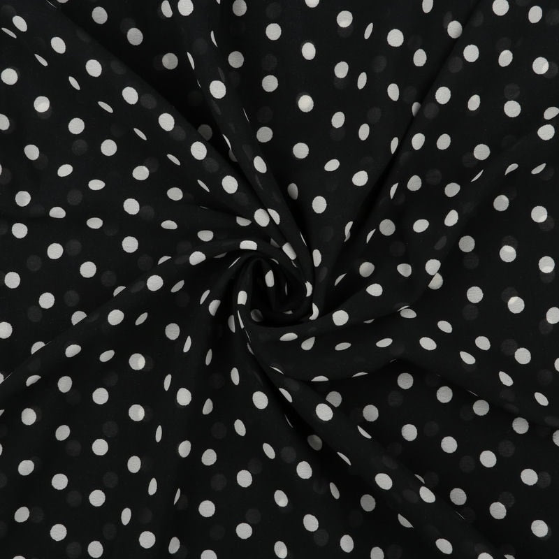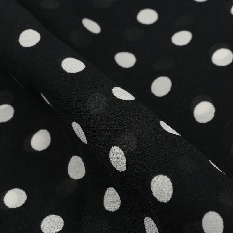 Black And White Polka Dots Pattern Screen Print Georgette Fabric