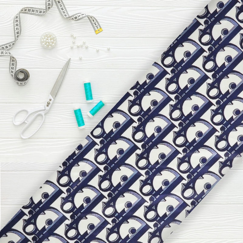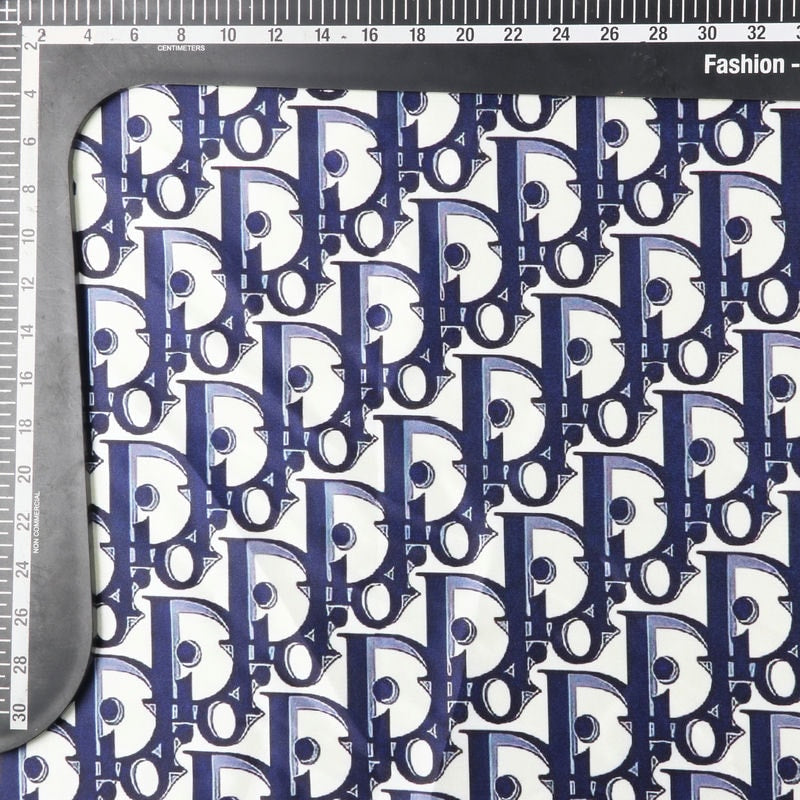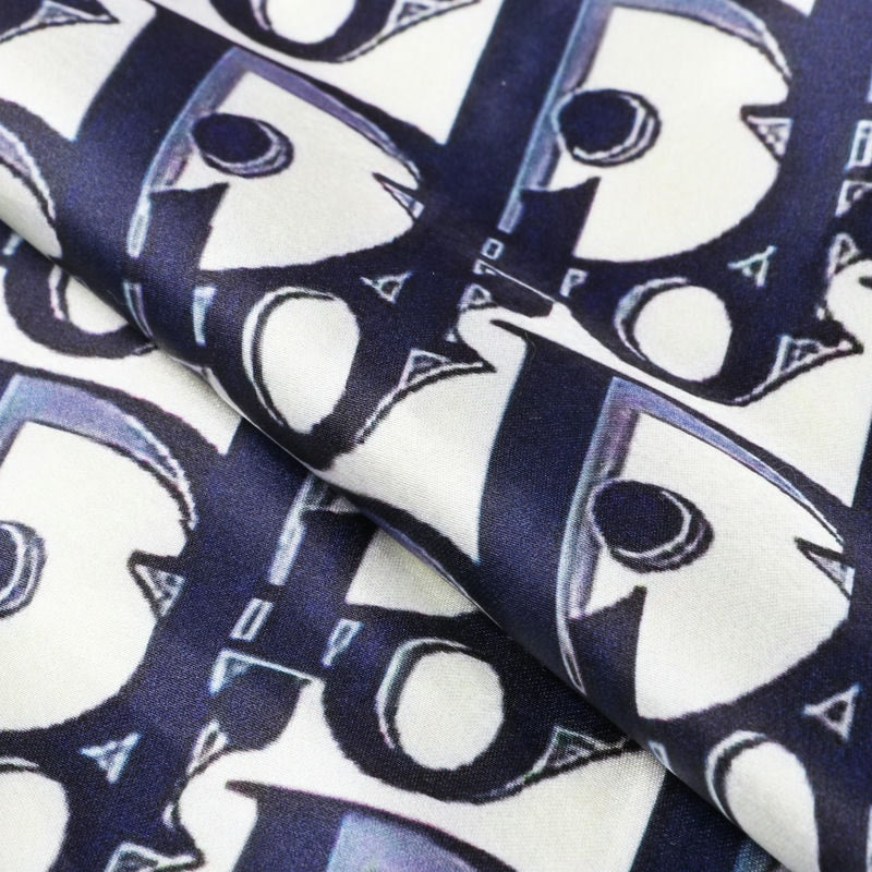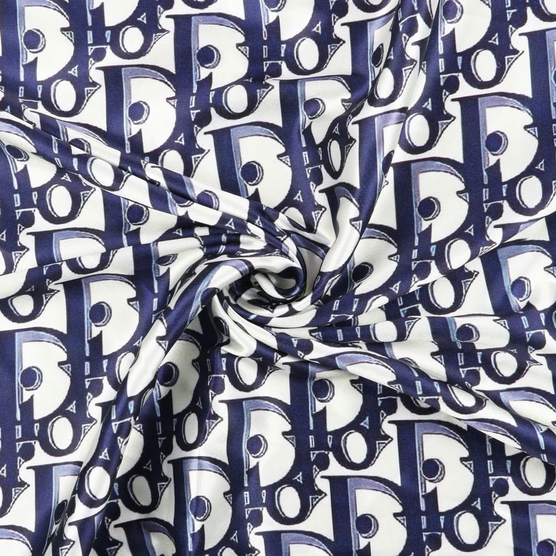 Blue And White Alphabet Pattern Digital Print Japan Satin Fabric