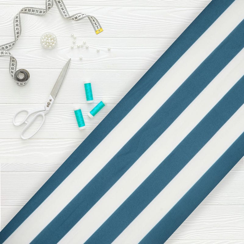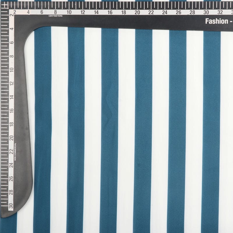 Blue And White Stripes Pattern Digital Print Rayon Fabric