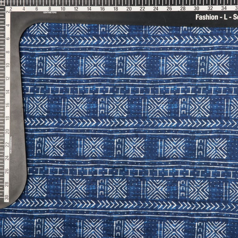Blue And White Stripes Pattern Digital Print Rayon Fabric