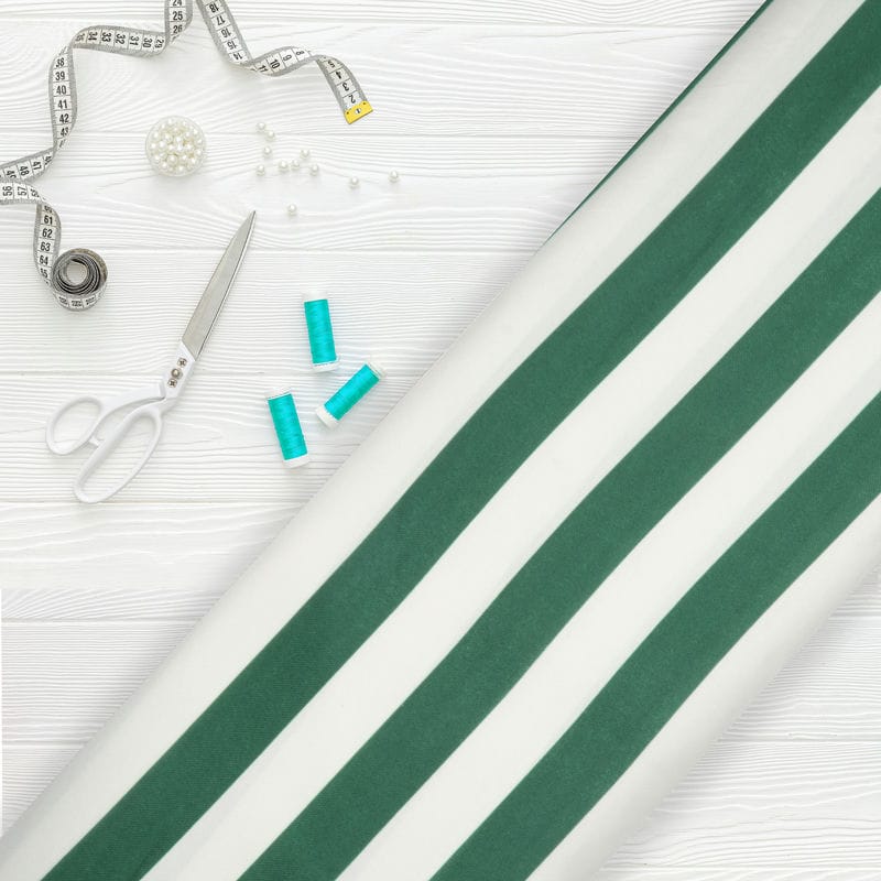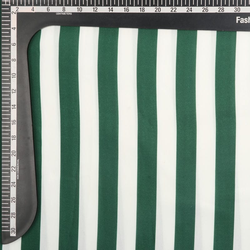 Dark Green And White Stripes Pattern Digital Print Rayon Fabric