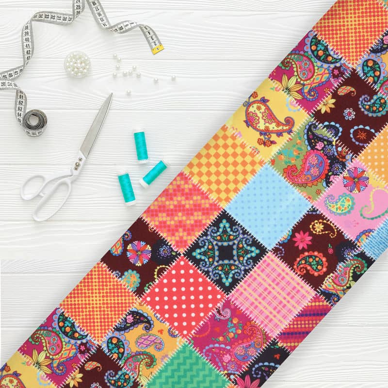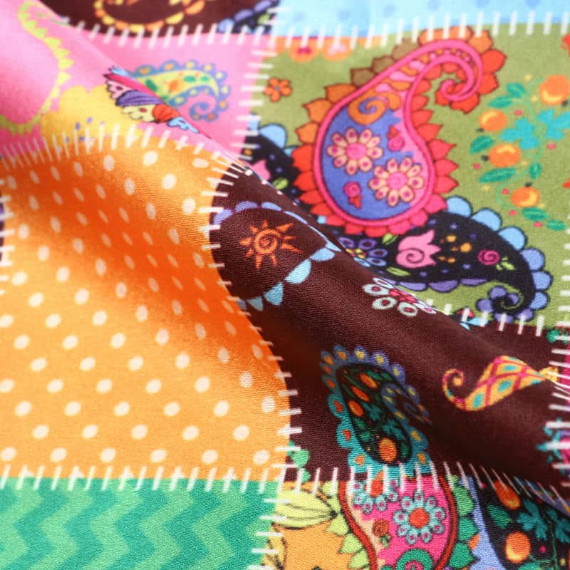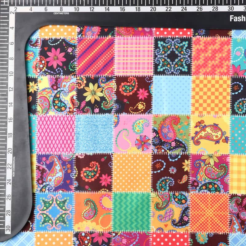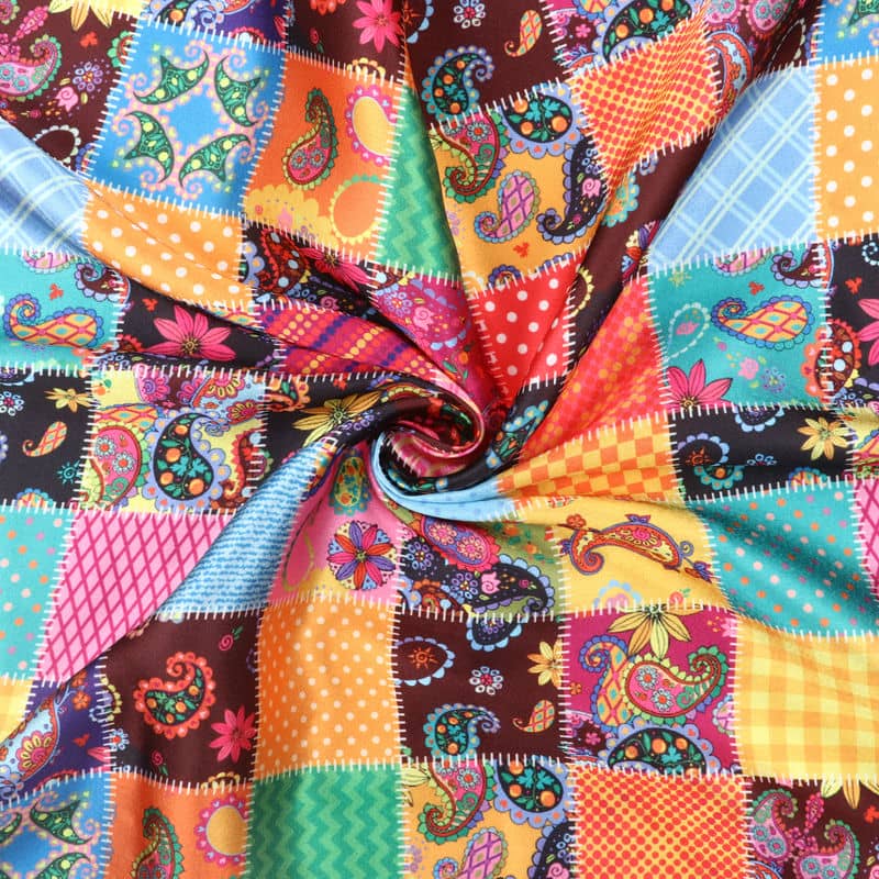 Multi Color Patchwork Pattern Digital Print Japan Satin Fabric