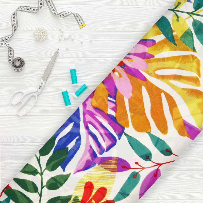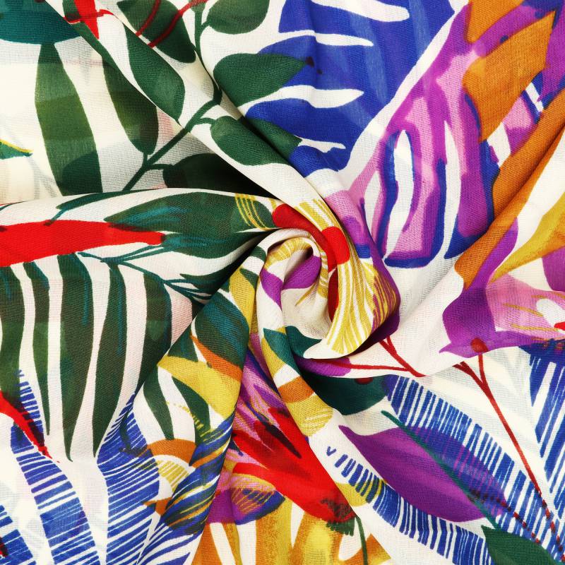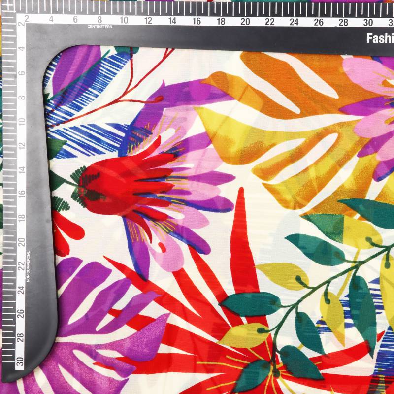 Multi Color Tropical Pattern Digital Print Georgette Fabric