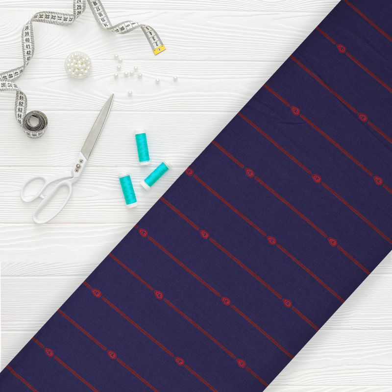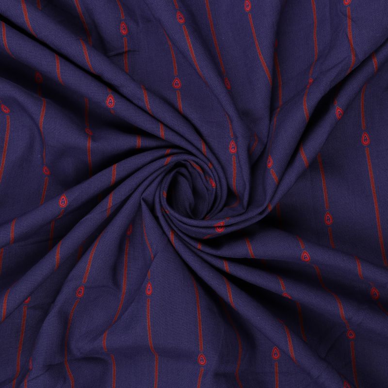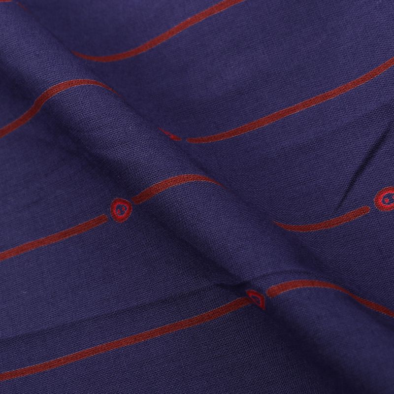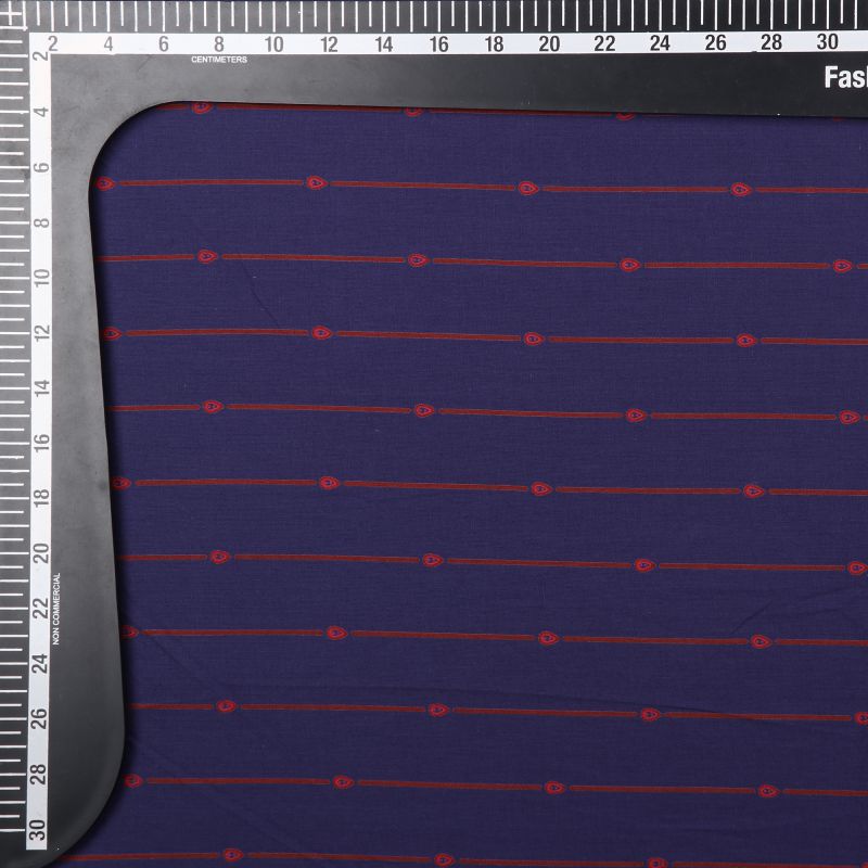 Navy Blue And Maroon Stripes Pattern Screen Print Cotton Fabric