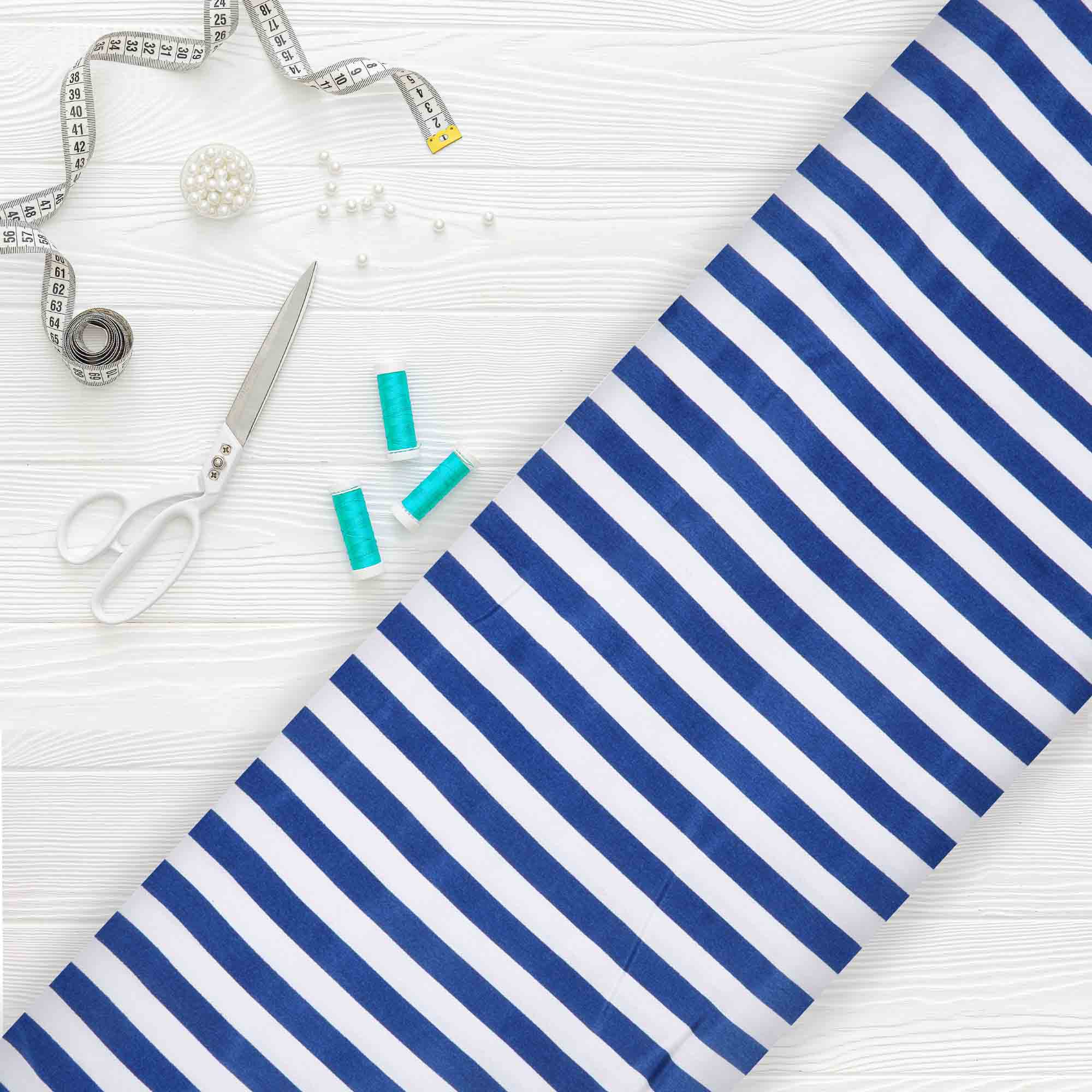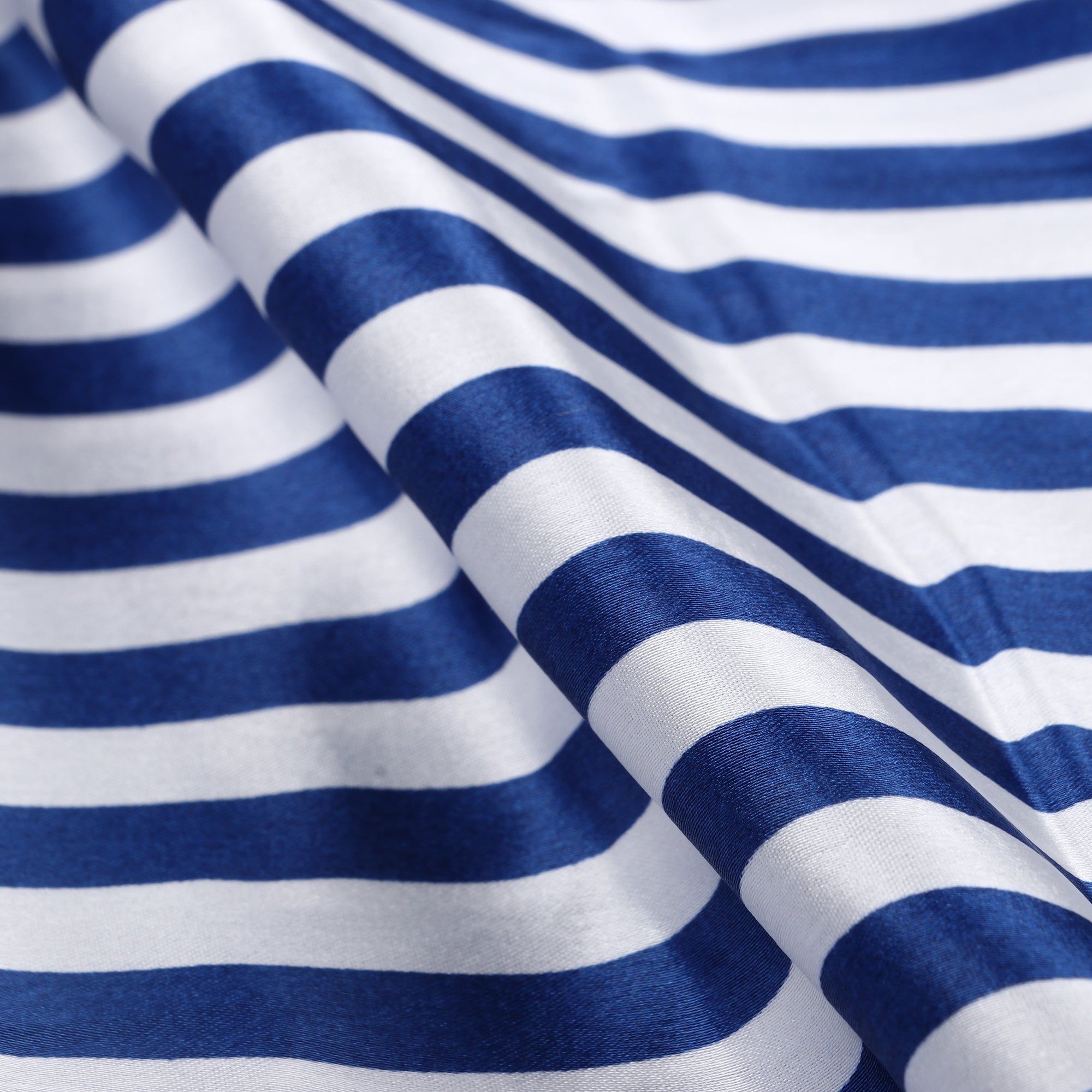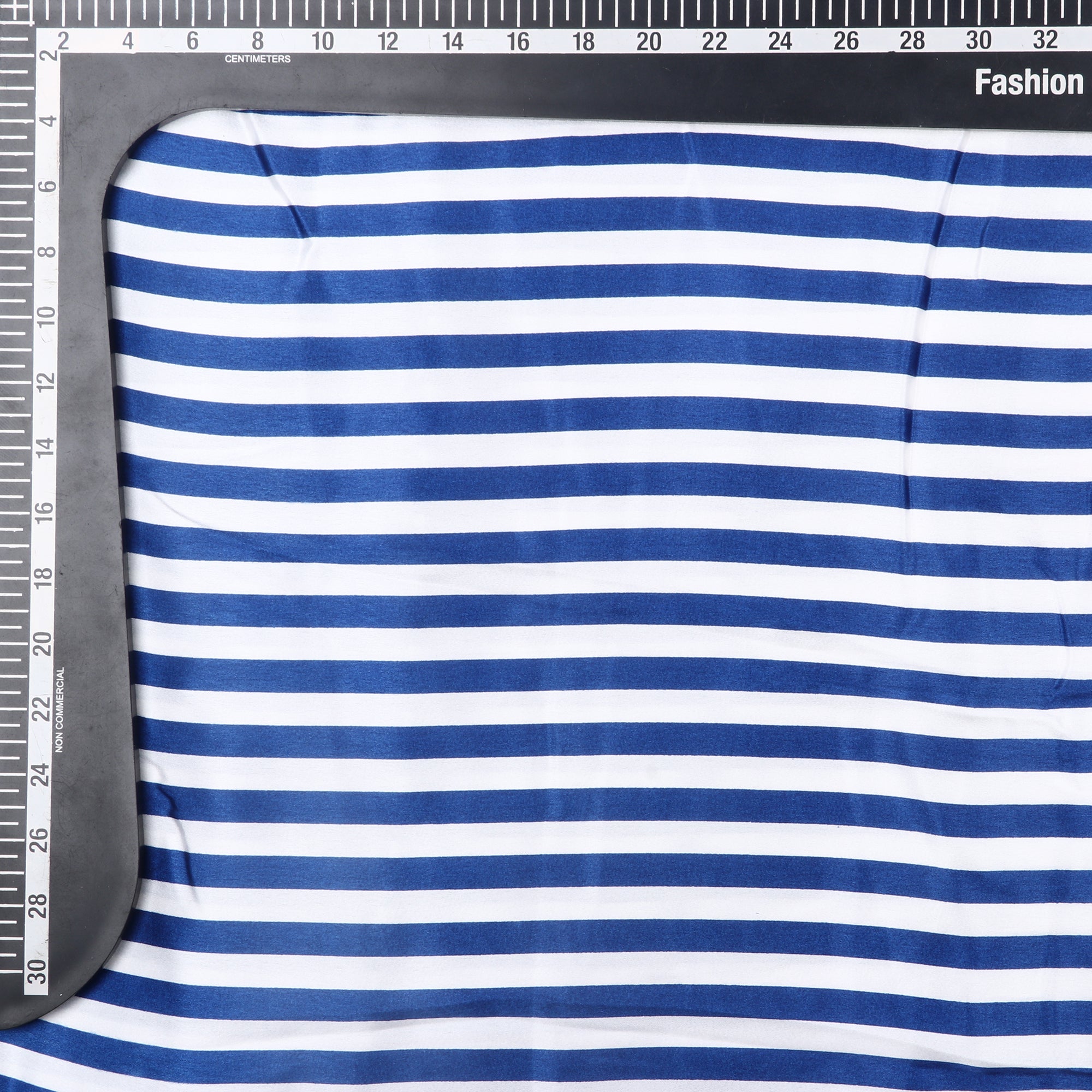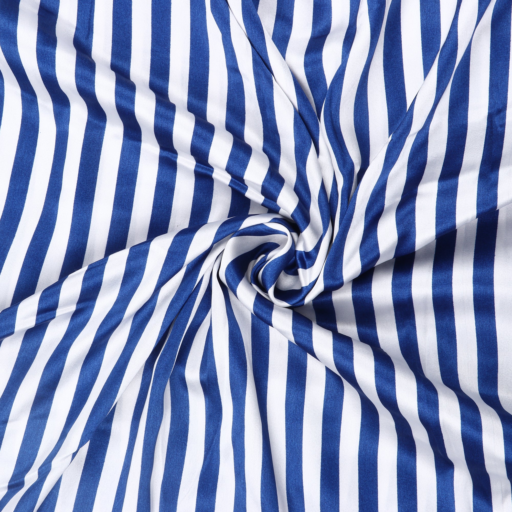 Navy Blue And White Stripes Pattern Digital Print Japan Satin Fabric