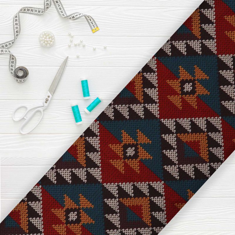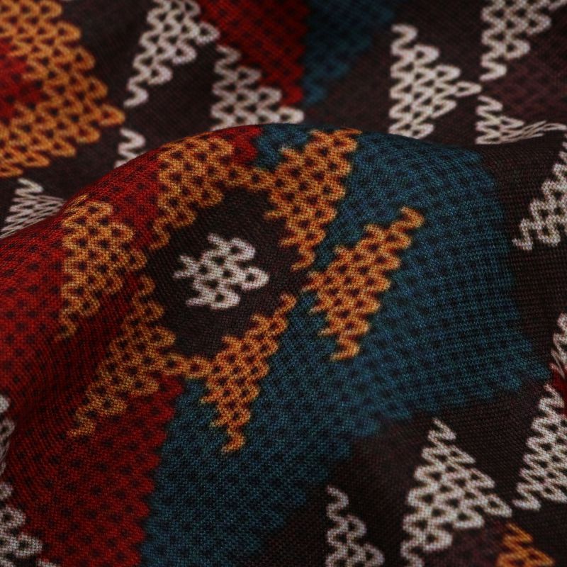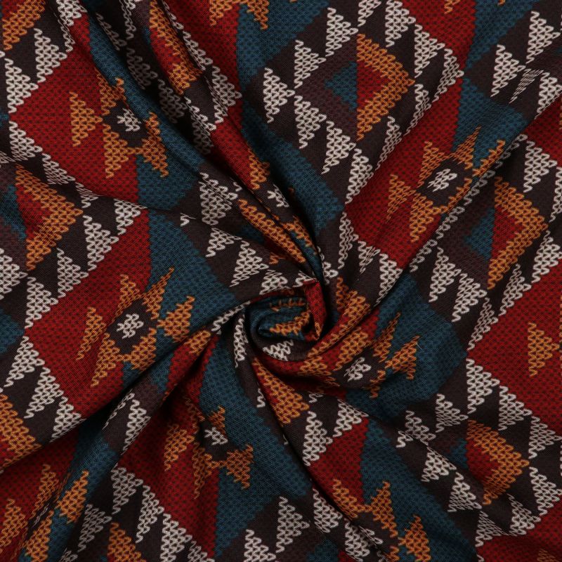 Orange And Cyan Blue Geometric Pattern Digital Print Rayon Fabric