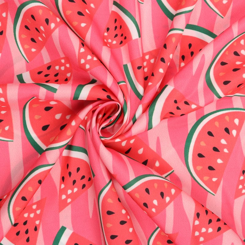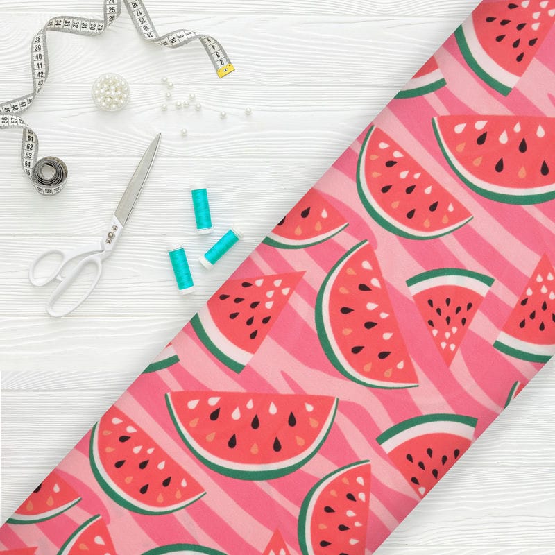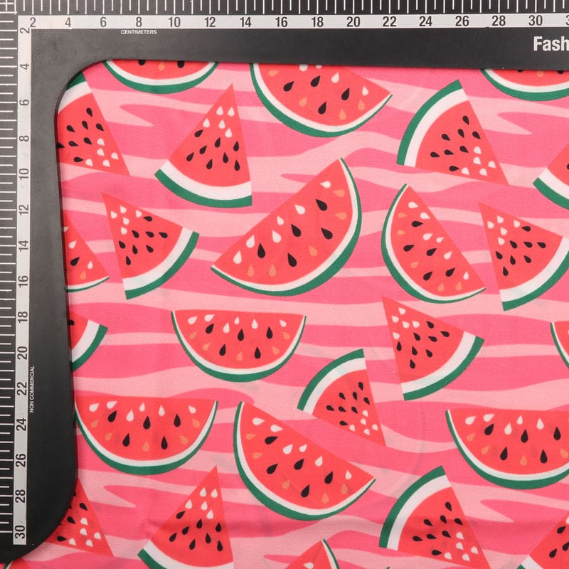 Pink And Red Fruit Pattern Digital Print Crepe Fabric