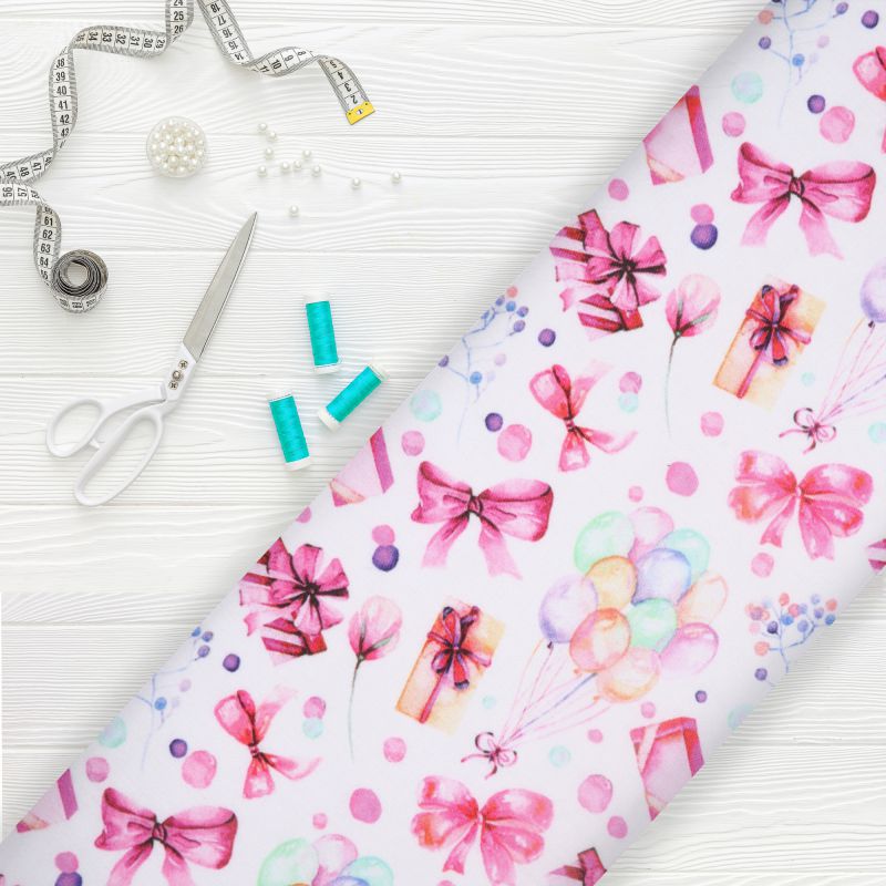 Pink And White Kids Pattern Digital Print Rayon Fabric