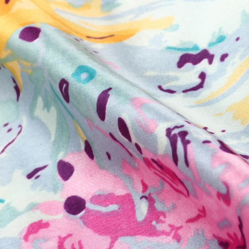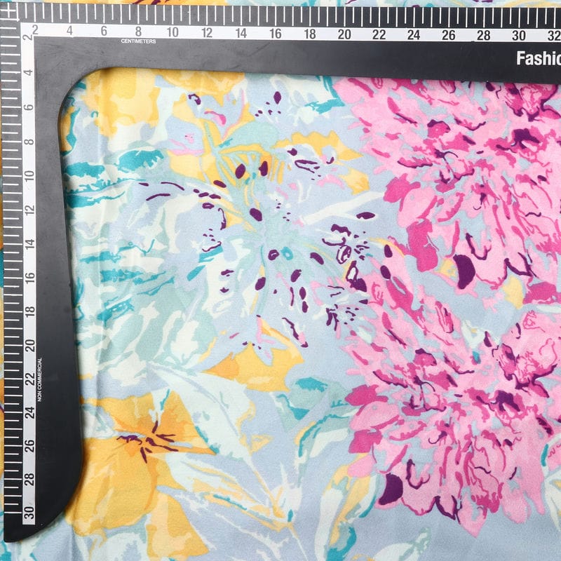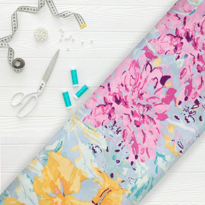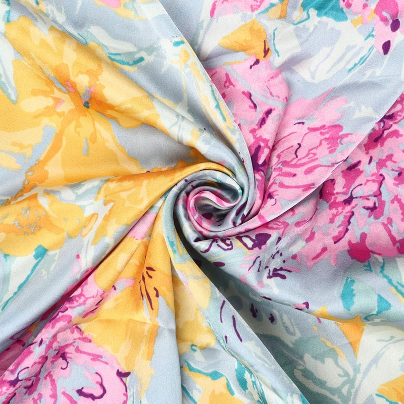 Pink And Yellow Floral Pattern Screen Print Japan Satin Fabric