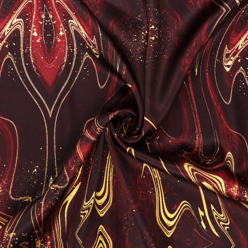 Red And Black Tie & Dye Pattern Digital Print Japan Satin Fabric