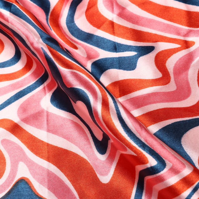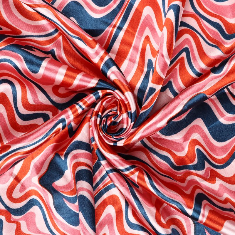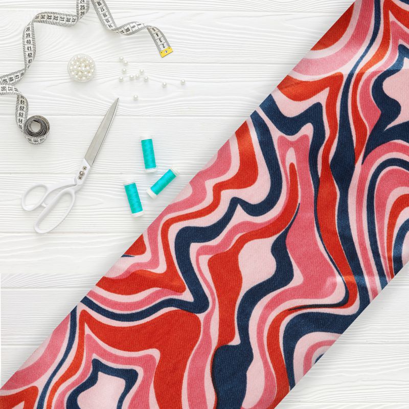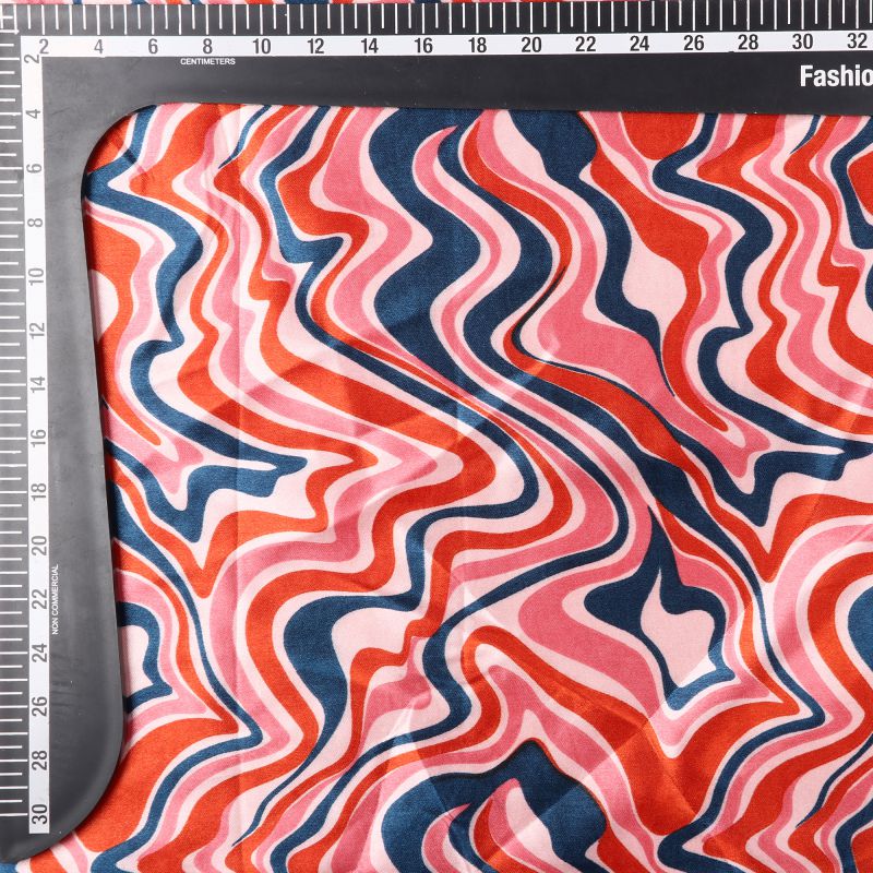 Red And Blue Abstract Pattern Screen Print Ultra Satin Fabric