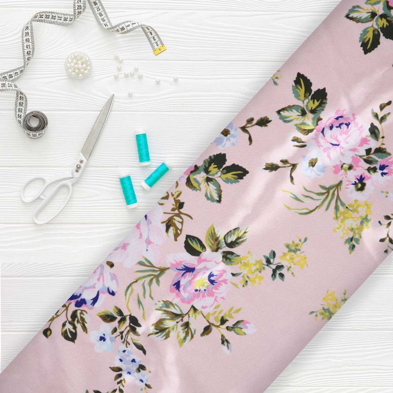 Rose Gold And Light Lavender Floral Pattern Digital Print Ultra Satin Fabric