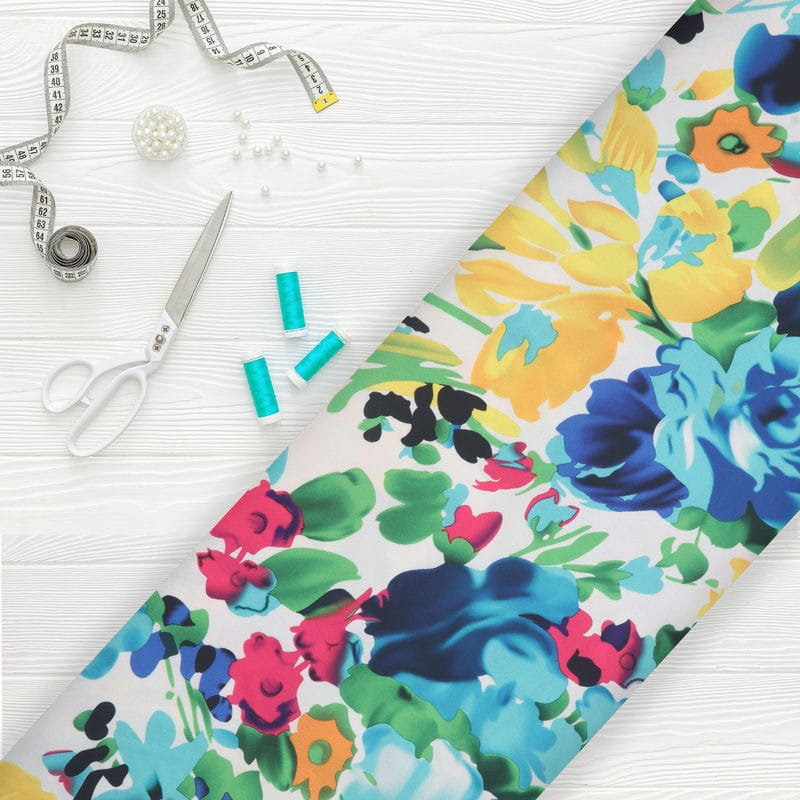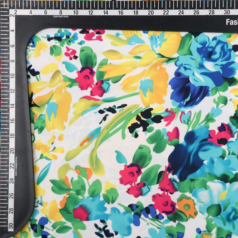 Sky Blue And Yellow Floral Pattern Digital Print American Crepe Fabric