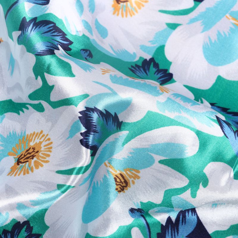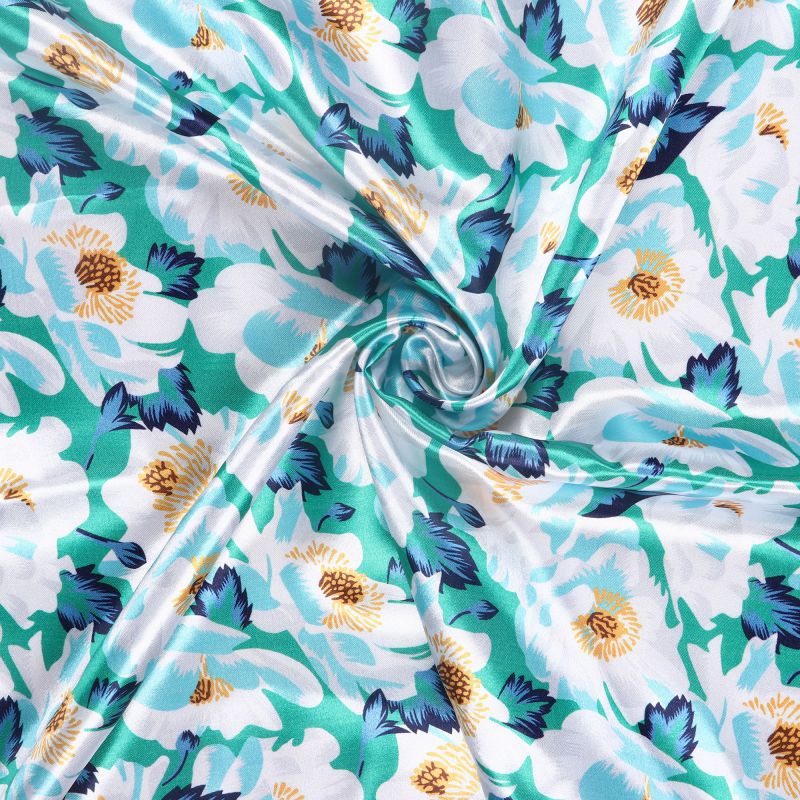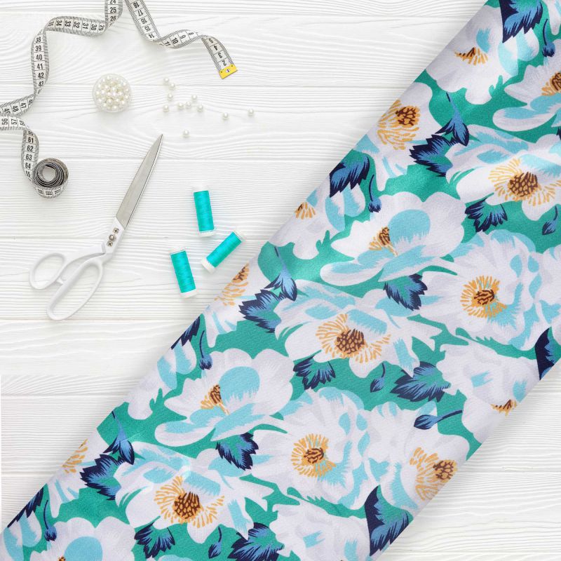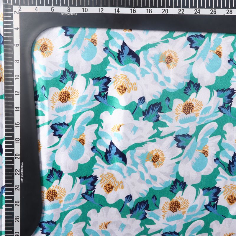 Turquoise Blue And White Floral Pattern Digital Print Ultra Satin Fabric
