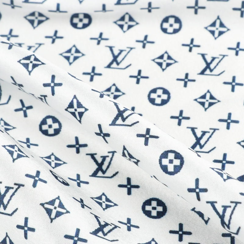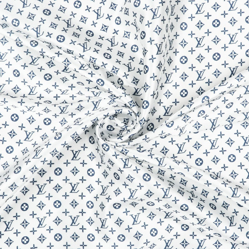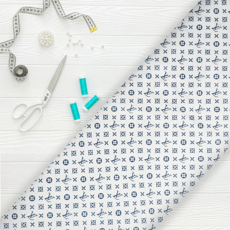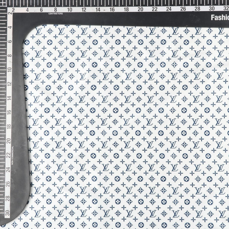 White And Blue Geometric Pattern Digital Print Japan Satin Fabric
