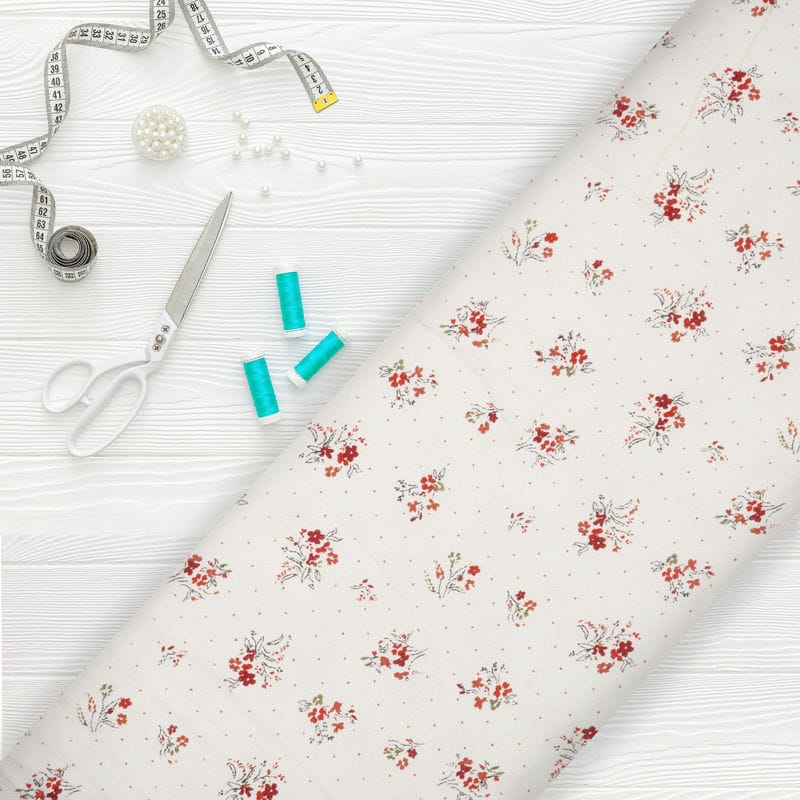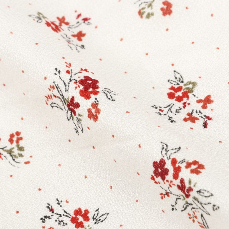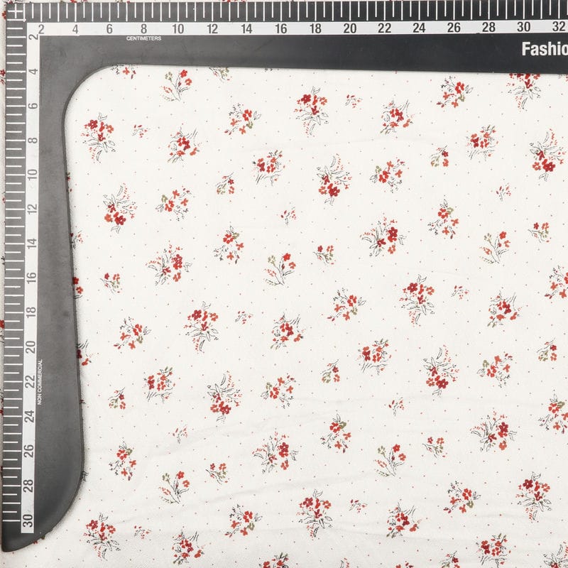 White And Dark Red Floral Pattern Screen Print Moss Crepe Fabric