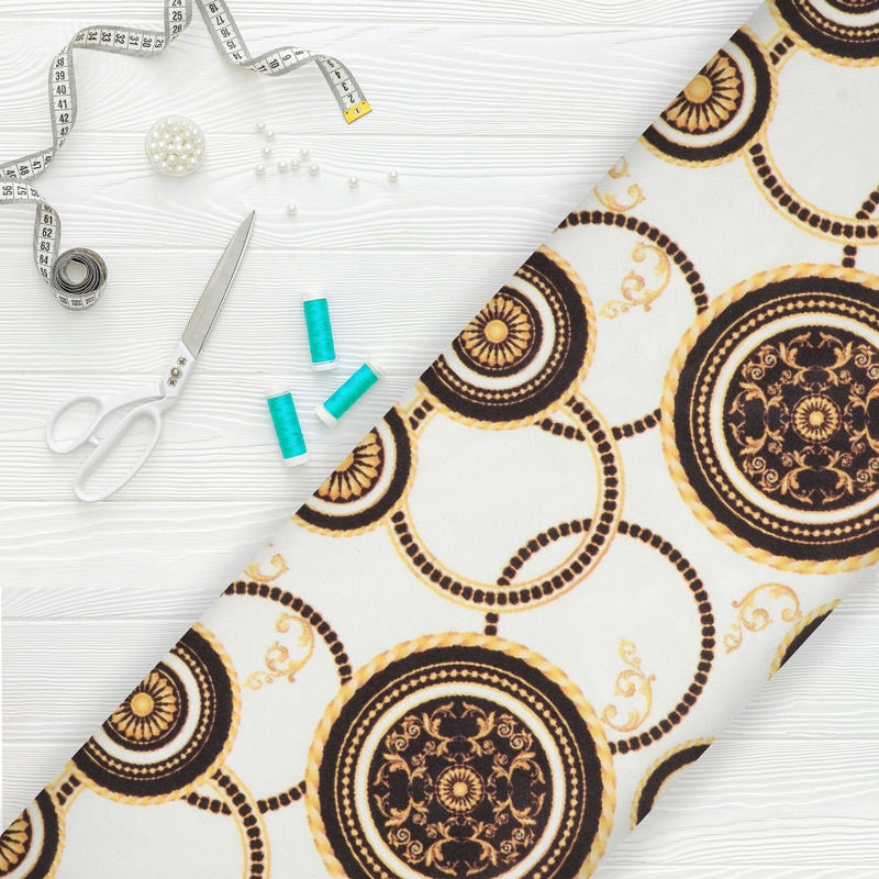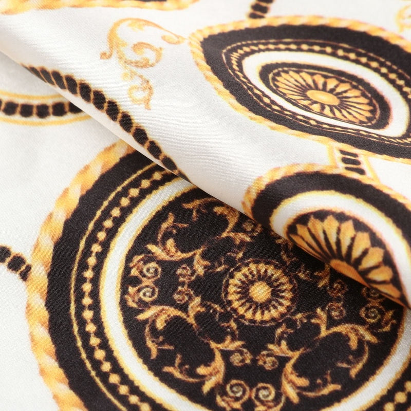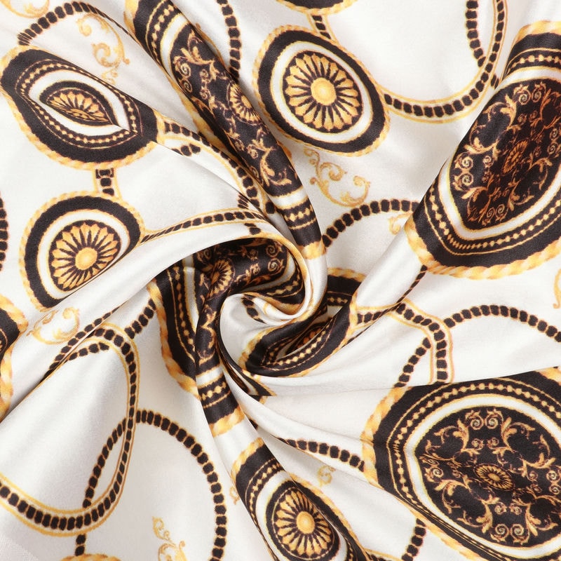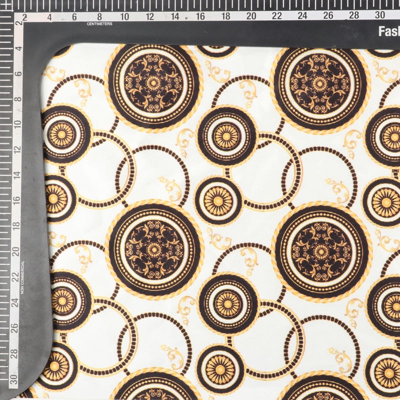 White And Gold Geometric Pattern Digital Print Japan Satin Fabric