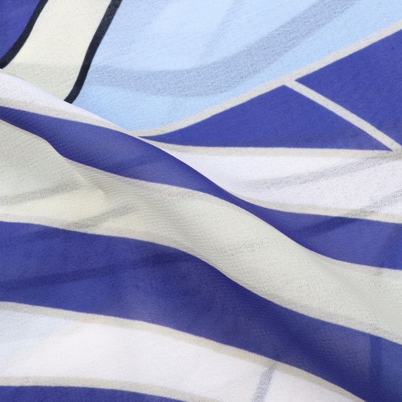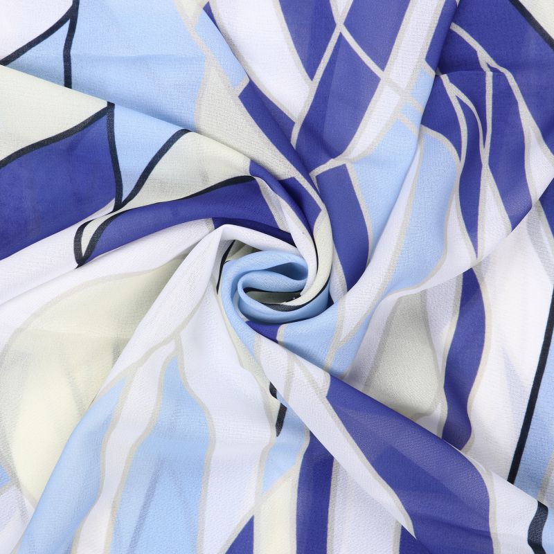 White And Havelock Blue Abstract Pattern Digital Print Georgette Fabric