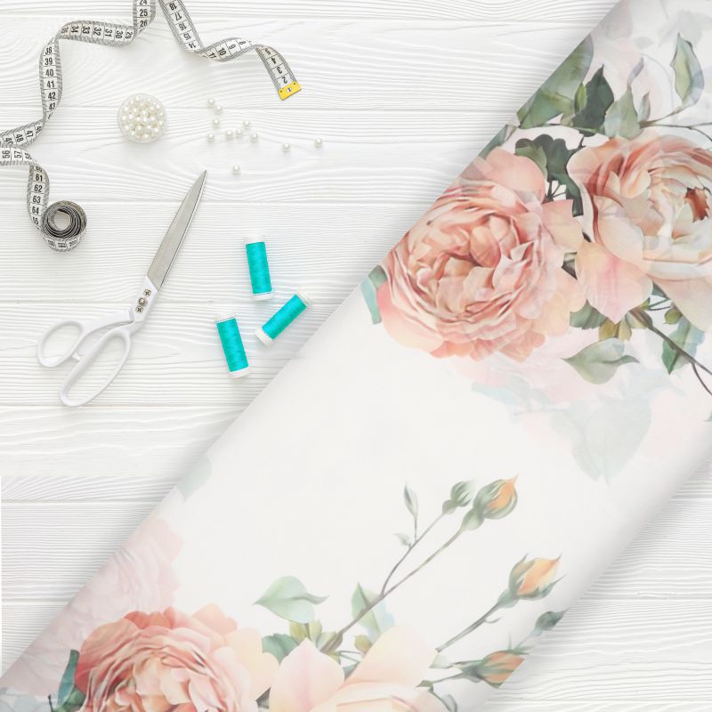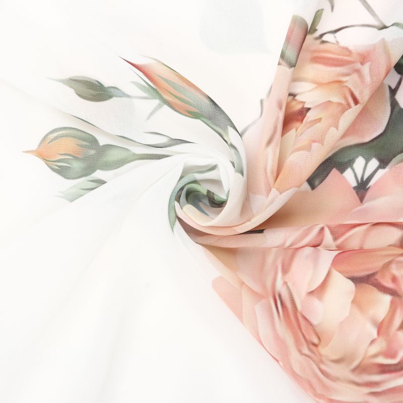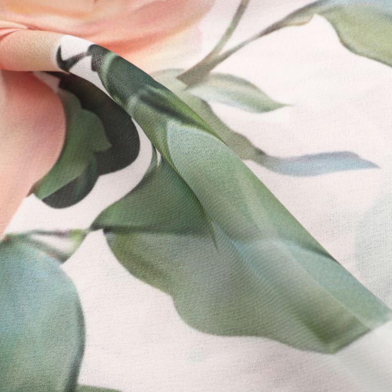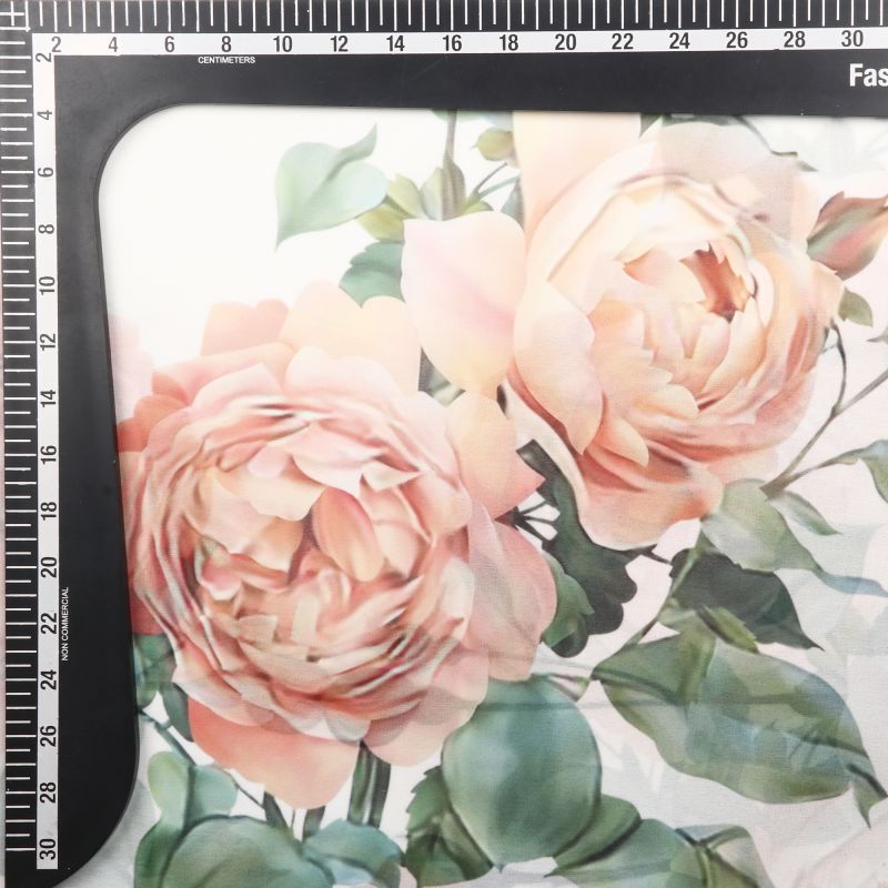 White And Light Peach Floral Pattern Digital Print Georgette Fabric