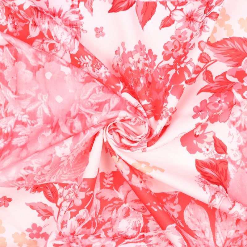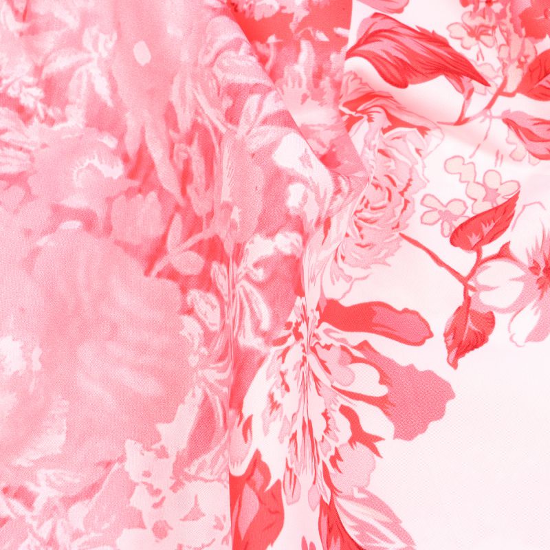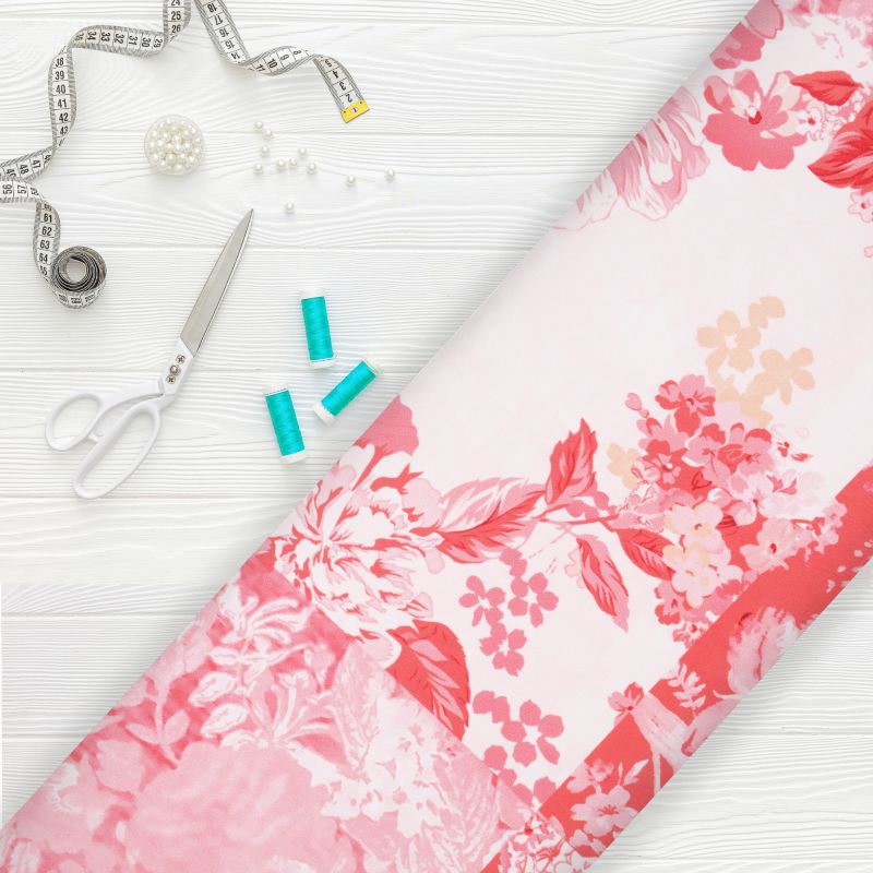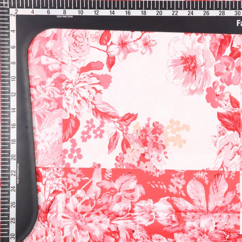 White And Pink Floral Pattern Digital Print Crepe Fabric