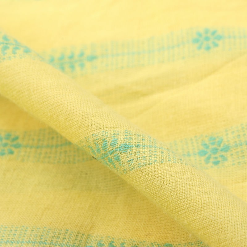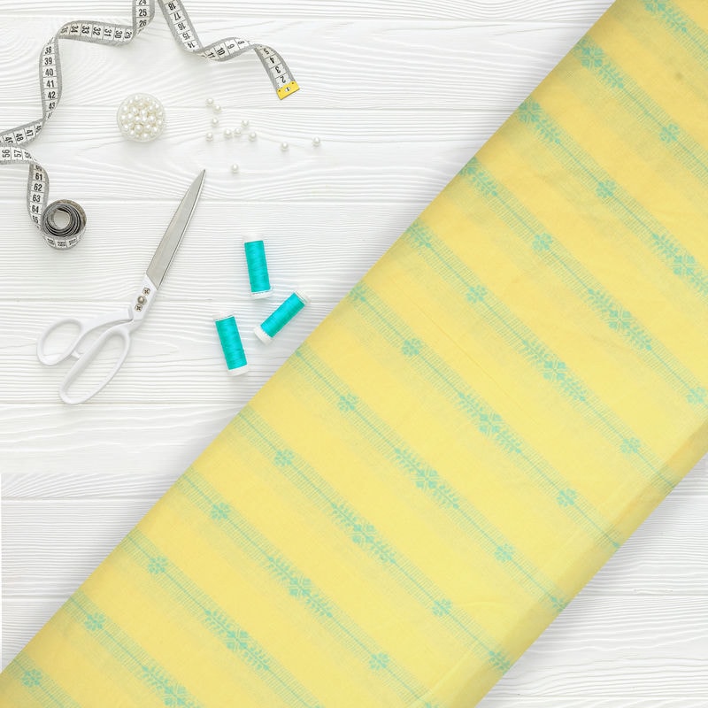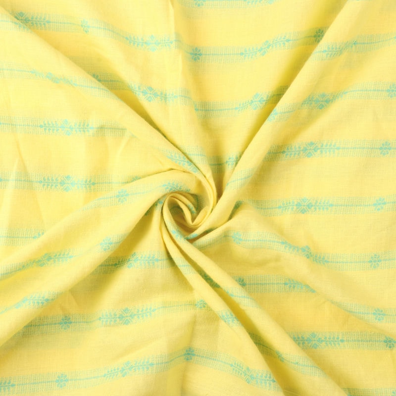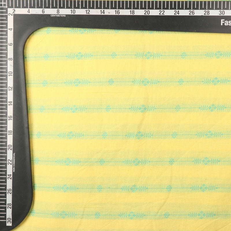 Yellow And Turquoise Stripes Pattern Yarn Dyed Cambric Cotton Fabric