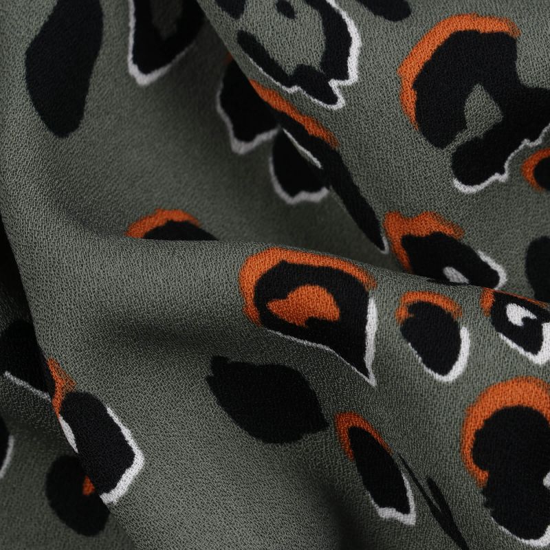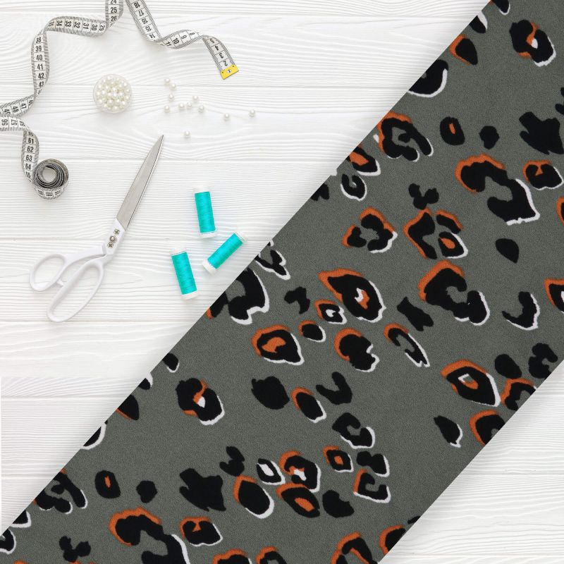 Army Green And Black Animal Pattern Screen Print Moss Crepe Fabric