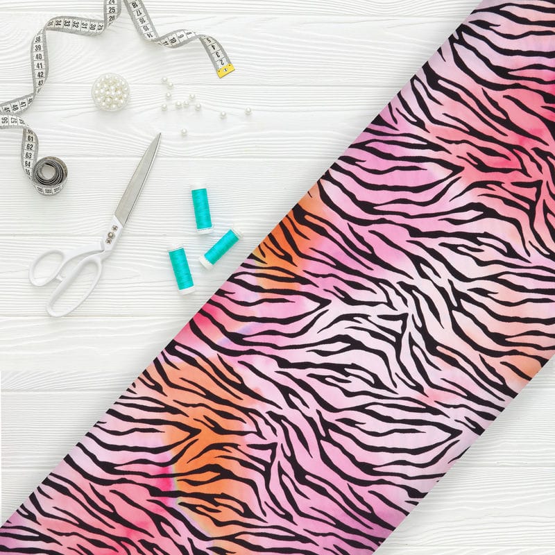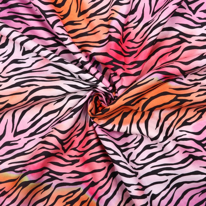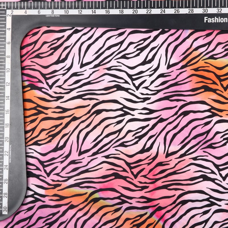 Pink And Orange Animal Pattern Digital Print Crepe Fabric