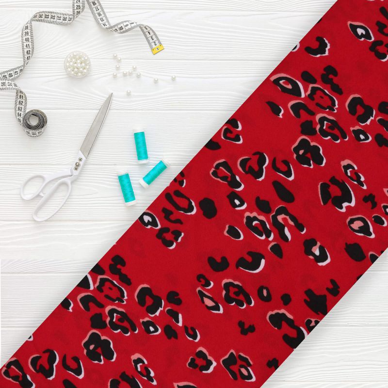 Red And Black Animal Pattern Screen Print Crepe Fabric