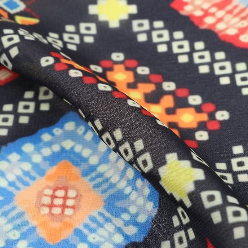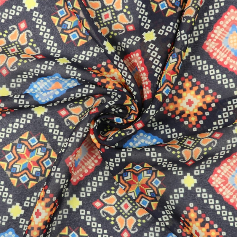 Multi Color Bandhani Pattern Digital Print Georgette Fabric