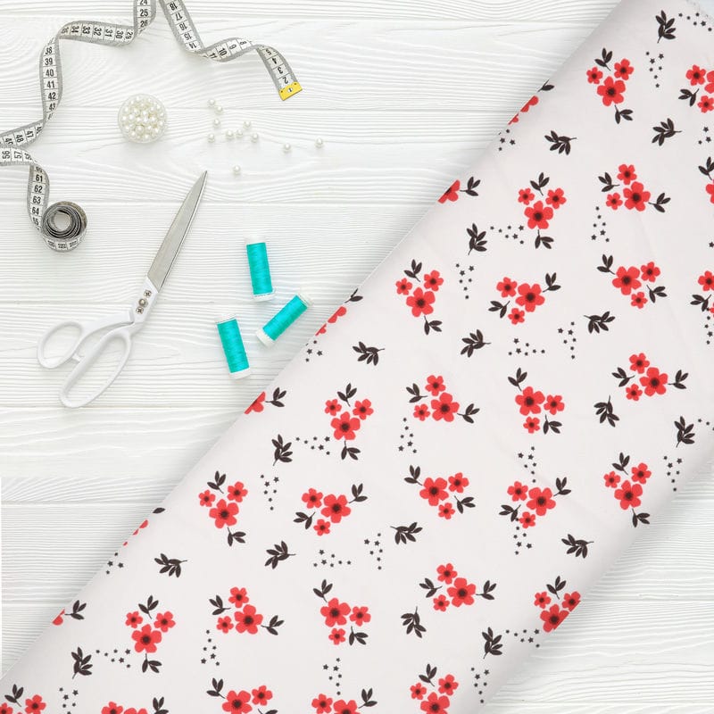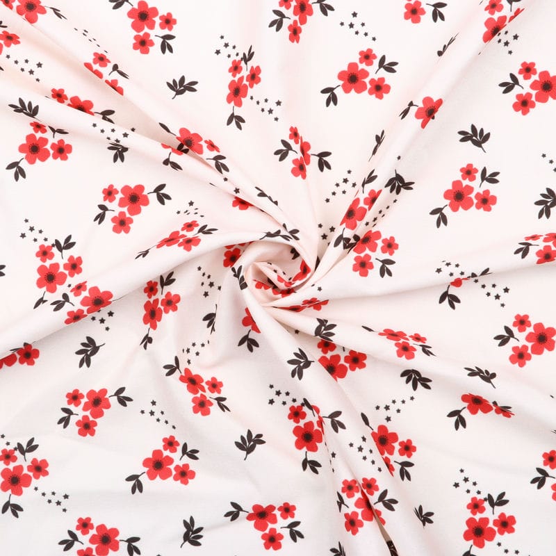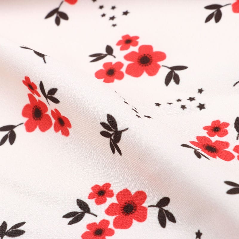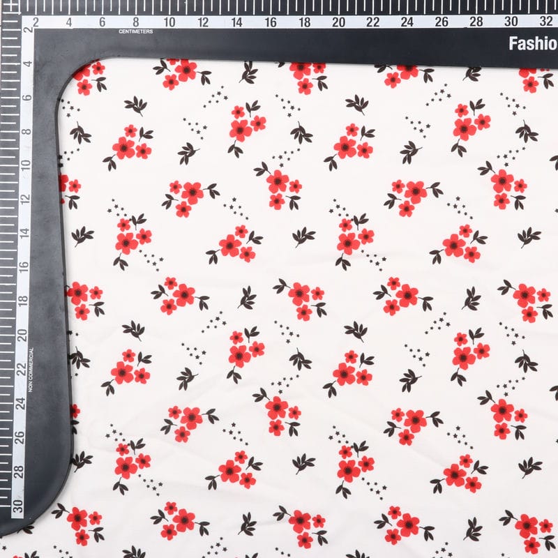 Beige And Red Floral Pattern Digital Print Crepe Fabric