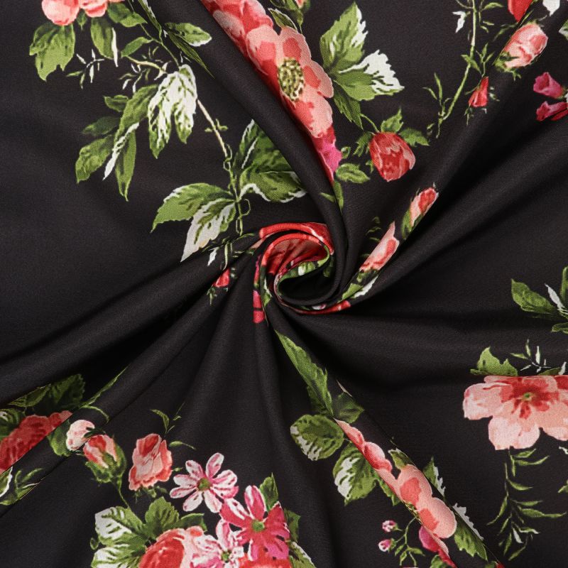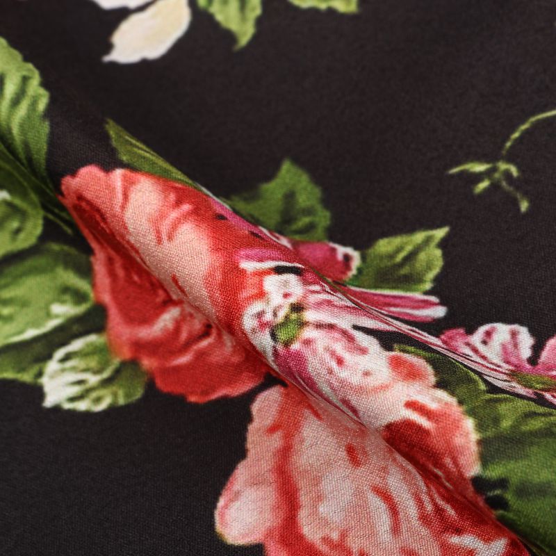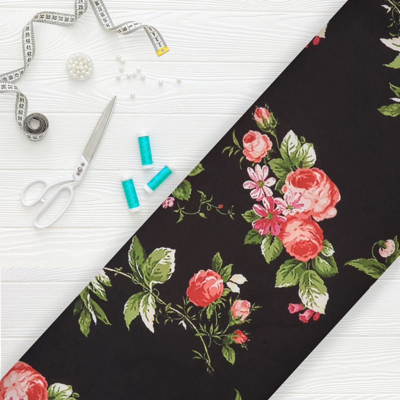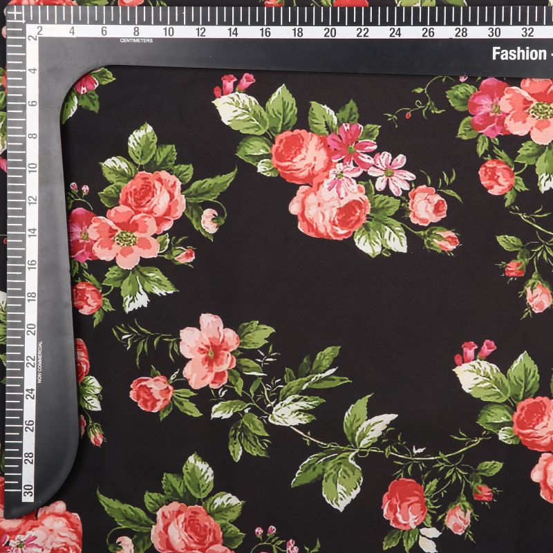 Black And Peach Floral Pattern Digital Print American Crepe Fabric