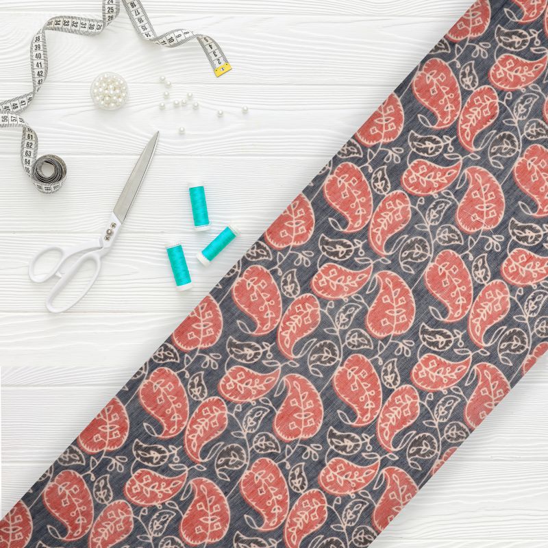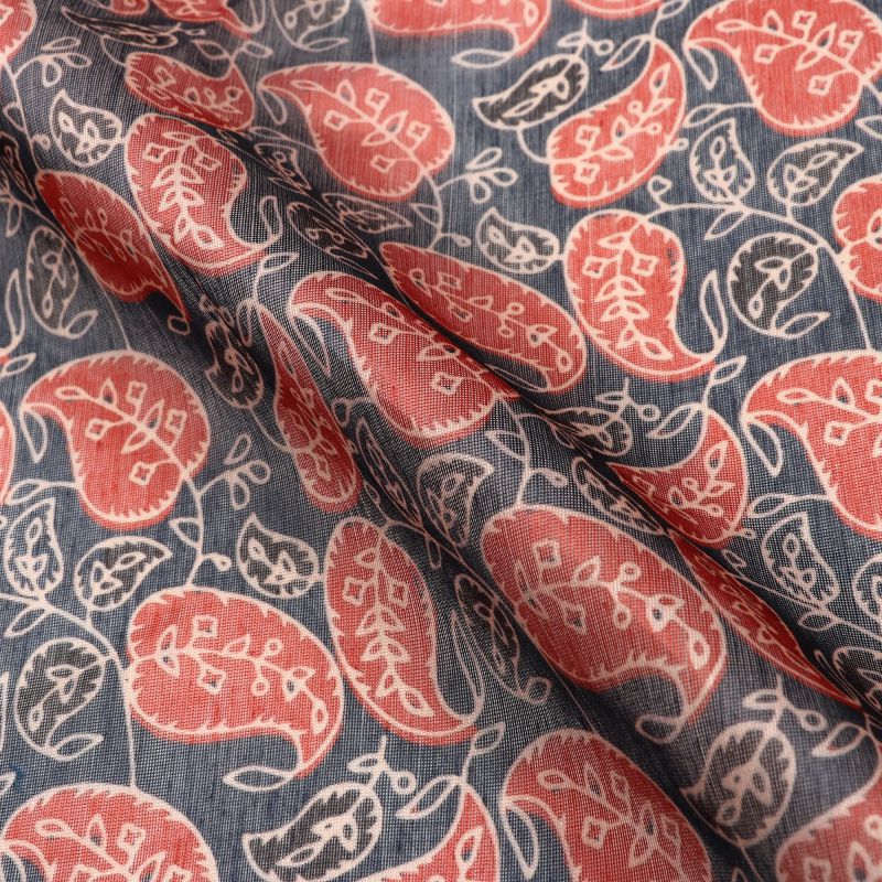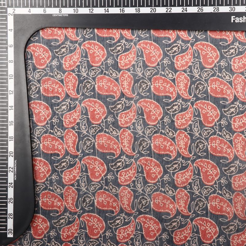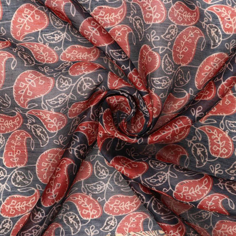 Black And Red Paisely Pattern Digital Print Chanderi Fabric