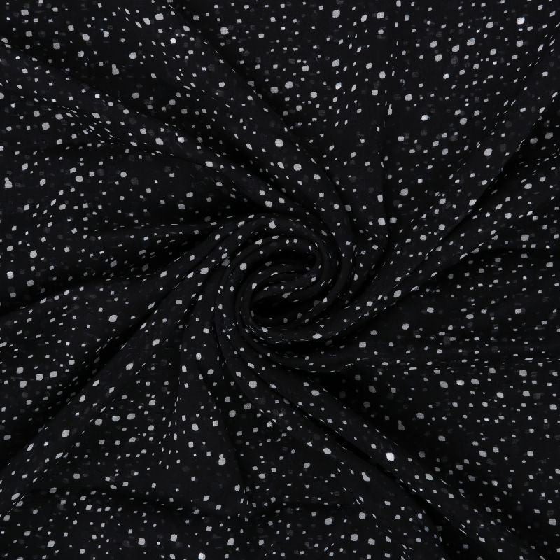 Black And White Dot Pattern Screen Print Chiffon Dobby Fabric