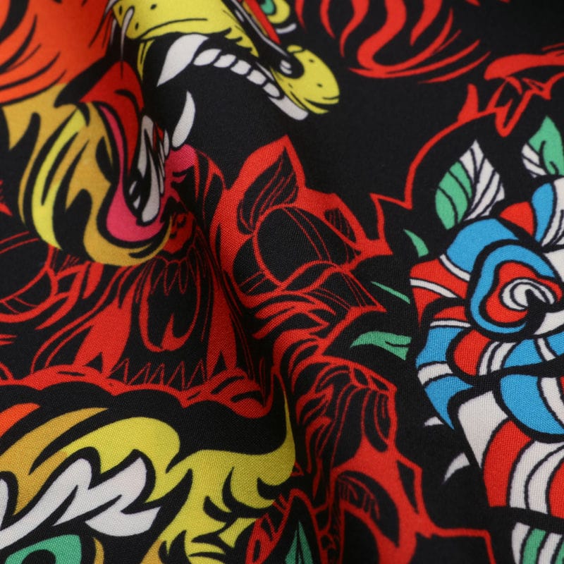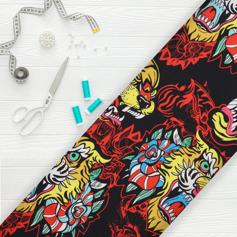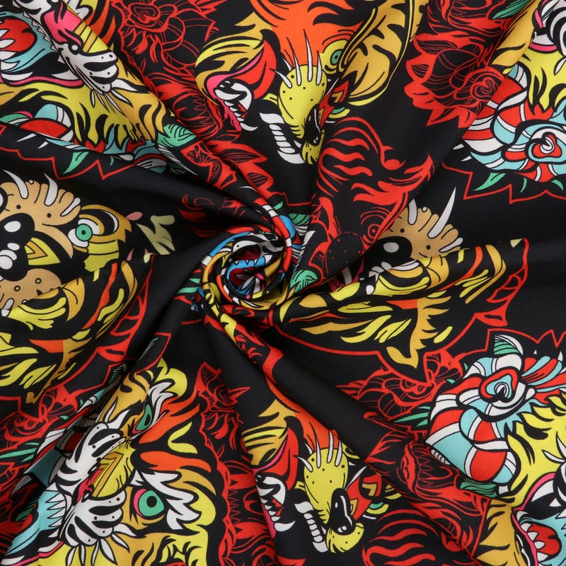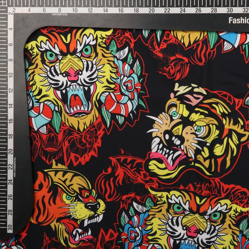 Black And Yellow Animal Pattern Digital Print Crepe Fabric