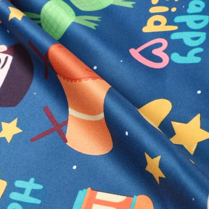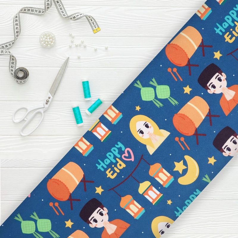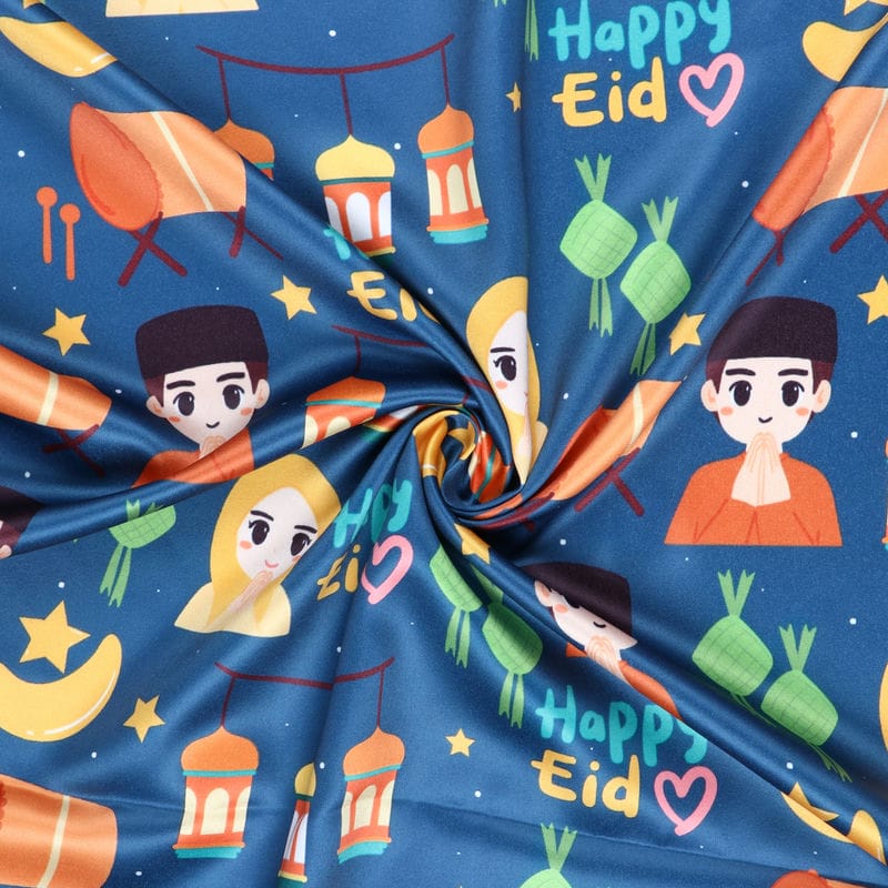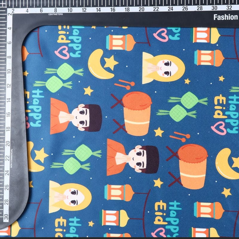 Blue And Yellow Ramadan Pattern Digital Print Silk Satin Fabric