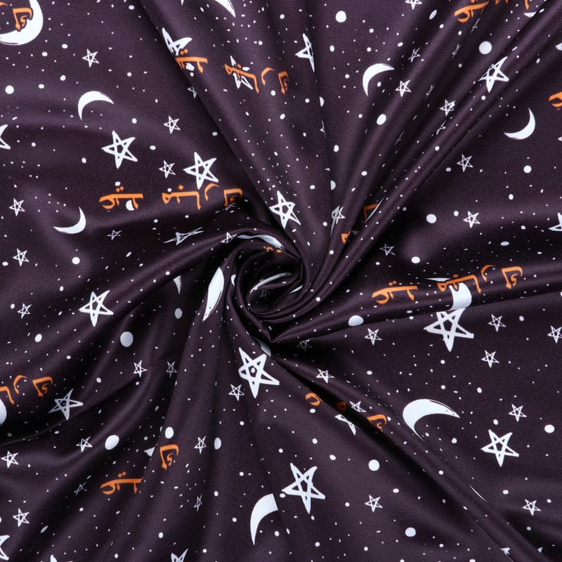 Brown And White Galaxy Pattern Digital Print Silk Satin Fabric