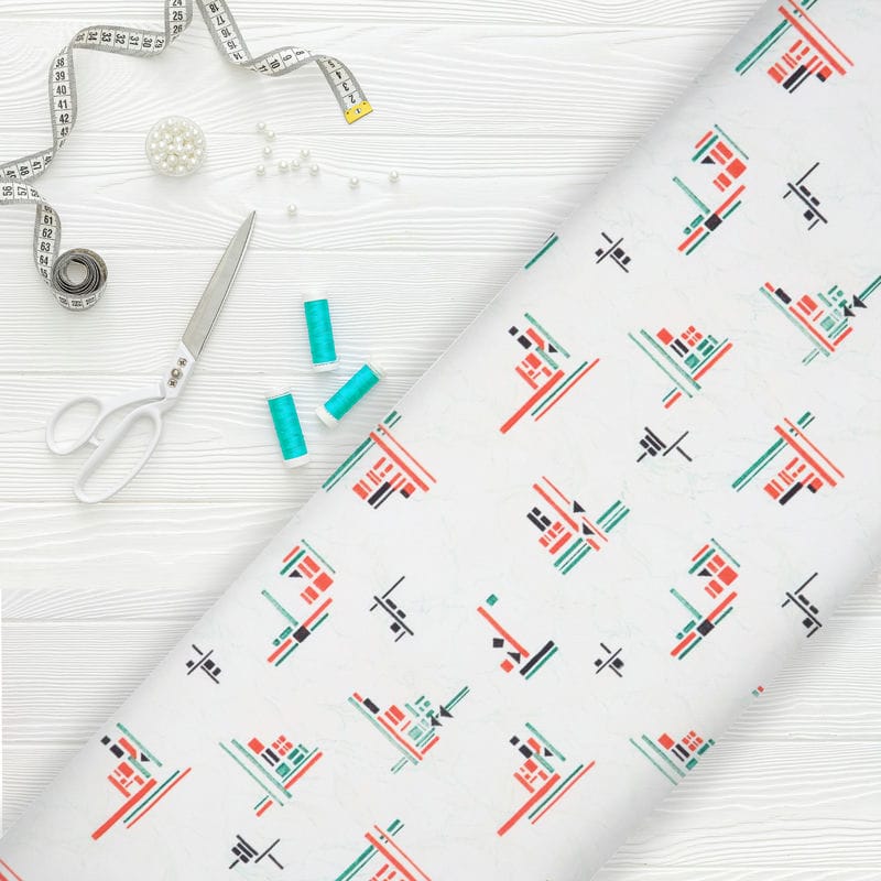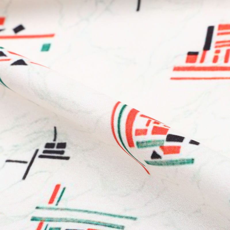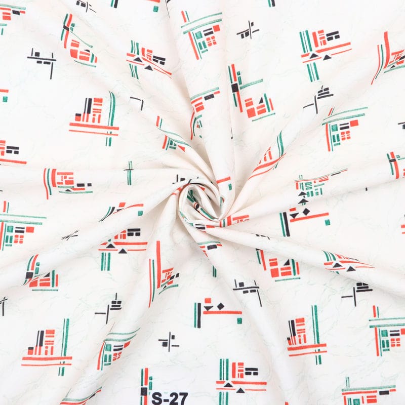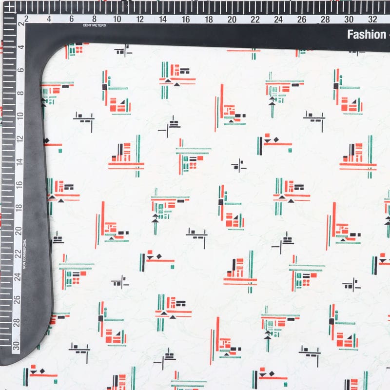 Cream And Red Geometric Pattern Digital Print Crepe Fabric
